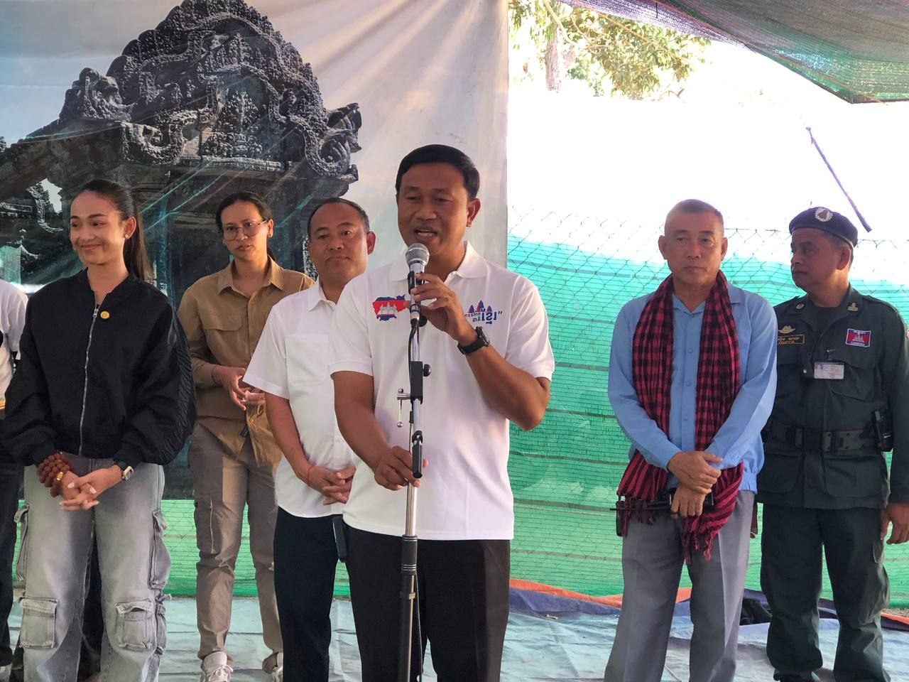 លោក គឹម ចាន់បញ្ញា បានថ្លែងអំណរគុណ «មូលនិធិសម្អាងការ ឌី សុនីត្តា» ដែលបានដឹកនាំក្រុមការងារ ចុះចែកស្បៀង សម្ភារ ដល់ប្រជាពលរដ្ឋភៀសសឹកនាពេលនេះ។លោកថ្លែងបន្តថា៖ក្នុងកាលៈទេសៈនេះ អ្វីដែលយើងទាំងអស់គ្នាត្រូវគិតជាចម្បងនោះគឺស្បៀង សម្ភារៈ សម្រាប់យើងទាំងអស់គ្នាដោះស្រាយជីវភាពប្រចាំថ្ងៃ ប៉ុន្តែរឿងផ្លូវចិត្តដែលសំខាន់នោះគឺយើងមិនអាចបំភ្លេចបានពីវីរភាពដ៍ក្លាហានរបស់វីរកងទ័ពរបស់យើង ដែលកំពុងការពារបូរណៈភាពទឹកដី ហើយម្យាងទៀតយើងត្រូវតែចងចាំមិនអាចបំភ្លេចបានជាប្រវត្តិសាស្ត្រ គឺការឈ្លានពានយ៉ាងកម្រោលរបស់កងទ័ពថៃ មកលើបូរណៈភាពទឹកដីយើង។
