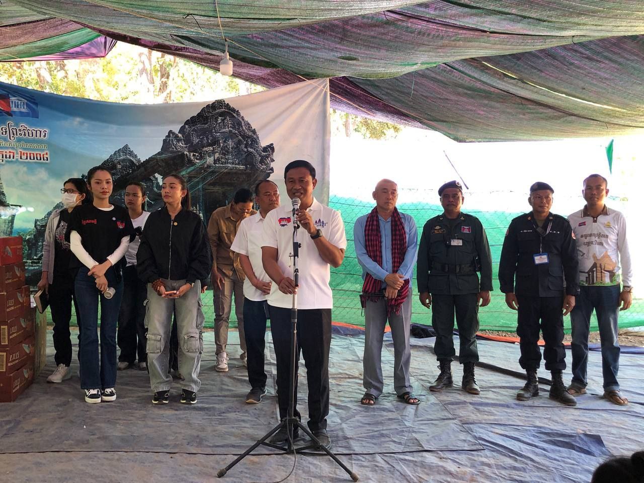 ការថ្លែងរបស់លោក គឹម ចាន់បញ្ញា អភិបាលរងខេត្តព្រះវិហារ បែបនេះ ក្នុងឱកាសដែលលោកអញ្ជើញជាតំណាងលោក គីម រិទ្ធី អភិបាលខេត្ត ដោយមានការចូលរួមពីលោក សំ លាងទ្រី ប្រធានក្រុមការងាររាជរដ្ឋាភិបាលចុះមូលដ្ឋានស្រុកឆែប និងលោក ឃិត សុធារ៉ា អភិបាលស្រុកឆែប និងមន្ត្រីពាក់ព័ន្ធជាច្រើនរូបទៀត ចូលរួមក្នុងពិធីសំណេះសំណាល និងចែកស្បៀង សម្ភារប្រើប្រាស់ ដែលជាអំណោយរបស់ «មូលនិធិសម្អាងការ ឌី សុនីត្តា» ដល់ប្រជាពលរដ្ឋភៀស សឹកជាង១០០០គ្រួសារ នៅមណ្ឌលសុវត្ថិភាពវត្តកំពង់សង្កែ ក្នុងឃុំកំពង់ស្រឡៅមួយ ស្រុកឆែប ជាប់ព្រំដែនឡាវ នៅថ្ងៃទី២៤ ខែធ្នូ ឆ្នាំ២០២៥។