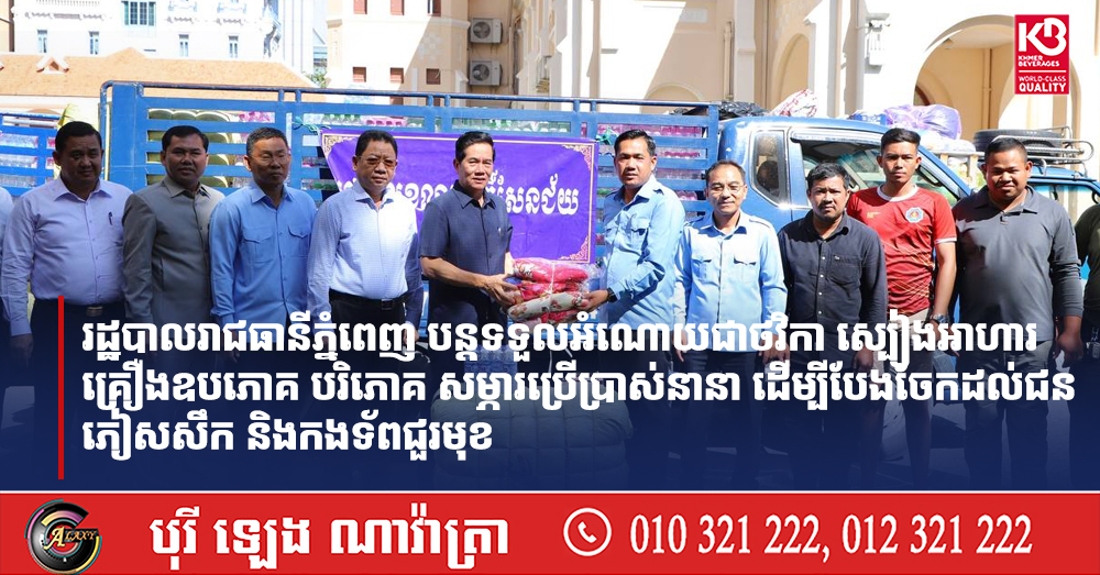 រដ្ឋបាលរាជធានីភ្នំពេញ បន្តទទួលអំណោយជាថវិកា ស្បៀងអាហារ គ្រឿងឧបភោគ បរិភោគ សម្ភារប្រើប្រាស់នានា ដើម្បីបែងចែកដល់ជនភៀសសឹក និងកងទ័ពជួរមុខ