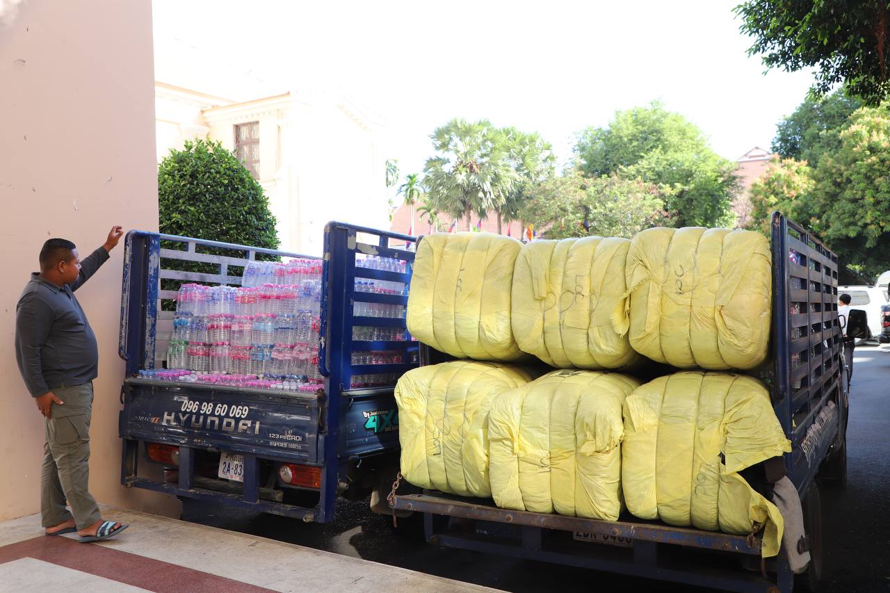 (ភ្នំពេញ)៖ លោក ឃួង ស្រេង អភិបាលរាជធានីភ្នំពេញ រួមជាមួយអភិបាលរងជាច្រើនរូបទៀត នាថ្ងៃទី២៤ ខែធ្នូ ឆ្នាំ២០២៥នេះ បានបន្តទទួលអំណោយជាថវិកា អង្ករ គ្រឿងឧបភោគ បរិភោគ និងសម្ភារប្រើប្រាស់ចាំបាច់ជាច្រើន ពីរដ្ឋបាលខណ្ឌ គណៈកម្មការផ្សារ ក្រុមហ៊ុនឯកជន និងសប្បុរសជន ប្រជាពលរដ្ឋ នៅរាជធានីភ្នំពេញ ដើម្បីយកទៅចែកជូនដល់វីរៈកងទ័ពជួរមុខ និងជនភៀសសឹក ខណៈក្រុមទាហានថៃ នៅតែបន្តបាញ់ចូលឈ្លានពានលើបូរណភាពទឹកដីកម្ពុជាយ៉ាងគឃ្លើន។