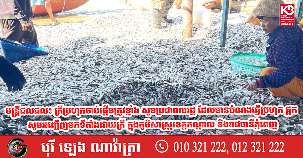 រដ្ឋបាលជលផលបានចេញសេចក្តីជូនដំណឹង ដោយបញ្ជាក់ឱ្យដឹងថា ត្រីចាប់ផ្តើមបន្លាស់ទីចេញពីបឹងទន្លេសាប បឹង ស្ទឹង និងព្រែកនានា ចូលទន្លេសាប ទន្លេមេគង្គ និងទន្លេបាសាក់ ដែលអំណោយផលដល់ការធ្វើ នេសាទបានត្រីច្រើន ជាពិសេសគន្លងដោយត្រីតាមដងទន្លេសាប នៅក្នុងភូមិសាស្ត្រខេត្តកណ្តាល និងរាជធានីភ្នំពេញ ចាប់ពីថ្ងៃព្រហស្បតិ៍ ៦កើត ដល់ថ្ងៃពុធ ១២កើត ខែបុស្ស ត្រូវនឹងថ្ងៃទី២៥ ដល់ថ្ងៃទី៣១ ខែធ្នូ ឆ្នាំ២០២៥ ក្នុងករណីមេឃស្រឡះល្អ គ្មានភ្លៀងកក់ខែ ឬមិនទទួលរងឥទ្ធិពលព្យុះភ្លៀង៕