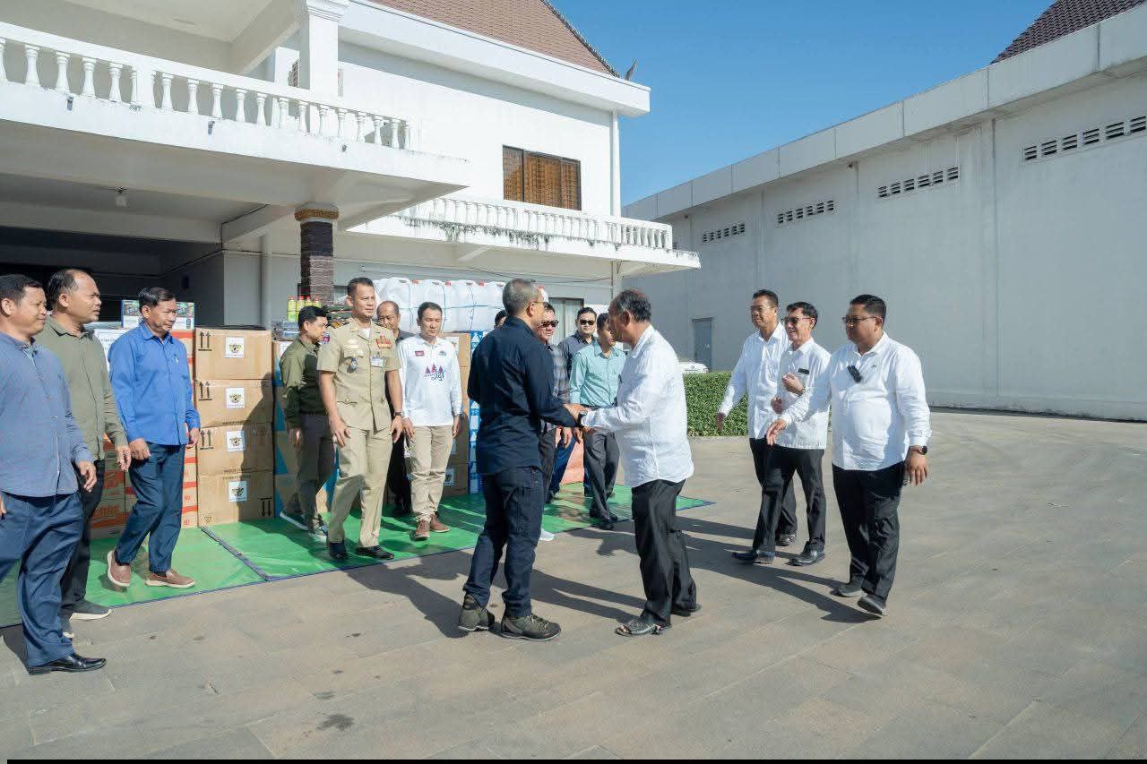 (ព្រៃវែង)៖ លោក សួន សុម៉ាលីន អភិបាលខេត្តព្រៃវែង រួមជាមួយថ្នាក់ដឹកនាំខេត្តព្រៃវែង នៅថ្ងៃទី២៤ ខែធ្នូ ឆ្នាំ២០២៥ បាននាំយកស្បៀងអាហារ គ្រឿងឧបភោគបរិភោគ សម្ភារប្រើប្រាស់ និងគ្រឿងបរិក្ខាពេទ្យ ថ្នាំពេទ្យ ដែលជាអំណោយដ៏ថ្លៃថ្លា របស់លោកអភិសន្តិបណ្ឌិត ស សុខា ឧបនាយករដ្ឋមន្ត្រី រដ្ឋមន្ត្រីក្រសួងមហាផ្ទៃ និងជាប្រធានក្រុមការងារ រាជរដ្ឋាភិបាលចុះមូលដ្ឋានខេត្តព្រៃវែង និងលោកស្រី កែ សួនសុភី ស សុខា រួមជាមួយអំណោយរបស់រដ្ឋបាលខេត្ត និងសប្បុរសជននានា ដែលបានចូលរួមឧបត្ថម្ភ តាមរយៈមូលនិធិ រដ្ឋបាលខេត្ត ជូនដល់វីរៈកងទ័ពនៅសមរភូមិមុខ និងជនភៀសសឹកចំនួន២,០០០គ្រួសារ នៅទិសខេត្តបន្ទាយមានជ័យ និងខេត្តបាត់ដំបងតាមរយៈ លោកអភិបាលខេត្តទាំងពីរ។