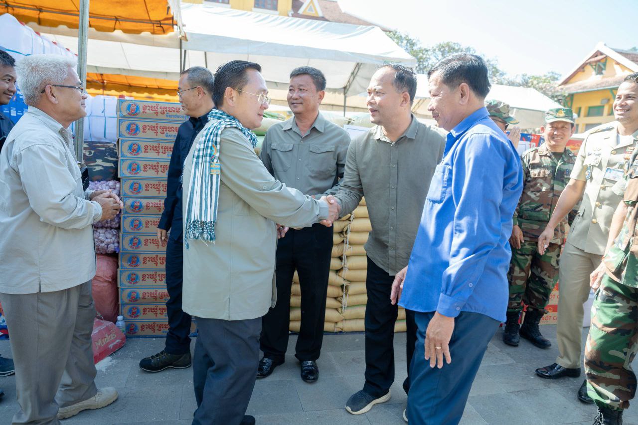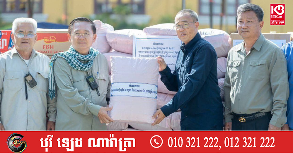 អភិបាលខេត្តព្រៃវែង នាំអំណោយឧបនាយករដ្ឋមន្ត្រី ស សុខា និងសប្បុរសជន ជូនដល់វីរៈកងទ័ពនៅសមរភូមិមុខ និងជនភៀសសឹក២,០០០គ្រួសារ នៅទិសខេត្តបន្ទាយមានជ័យ និងខេត្តបាត់ដំបង
