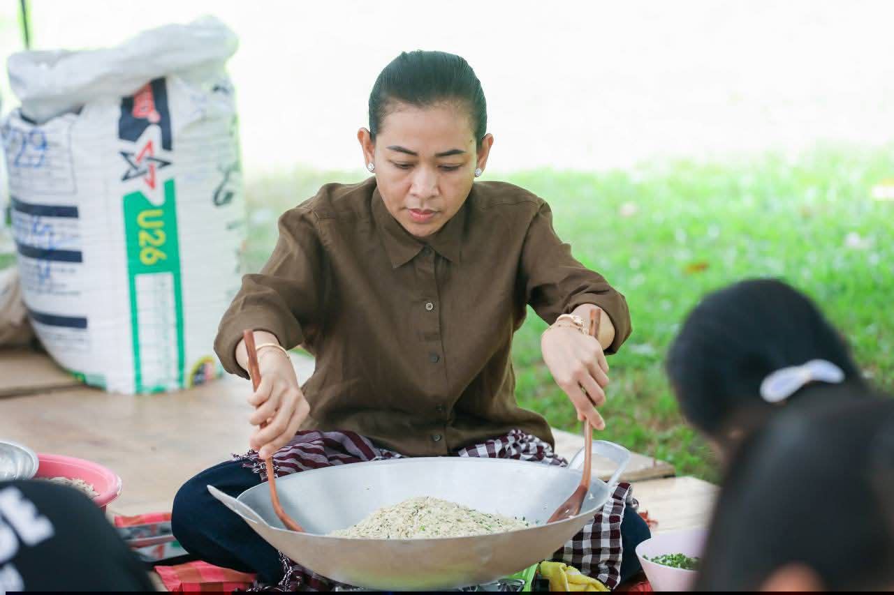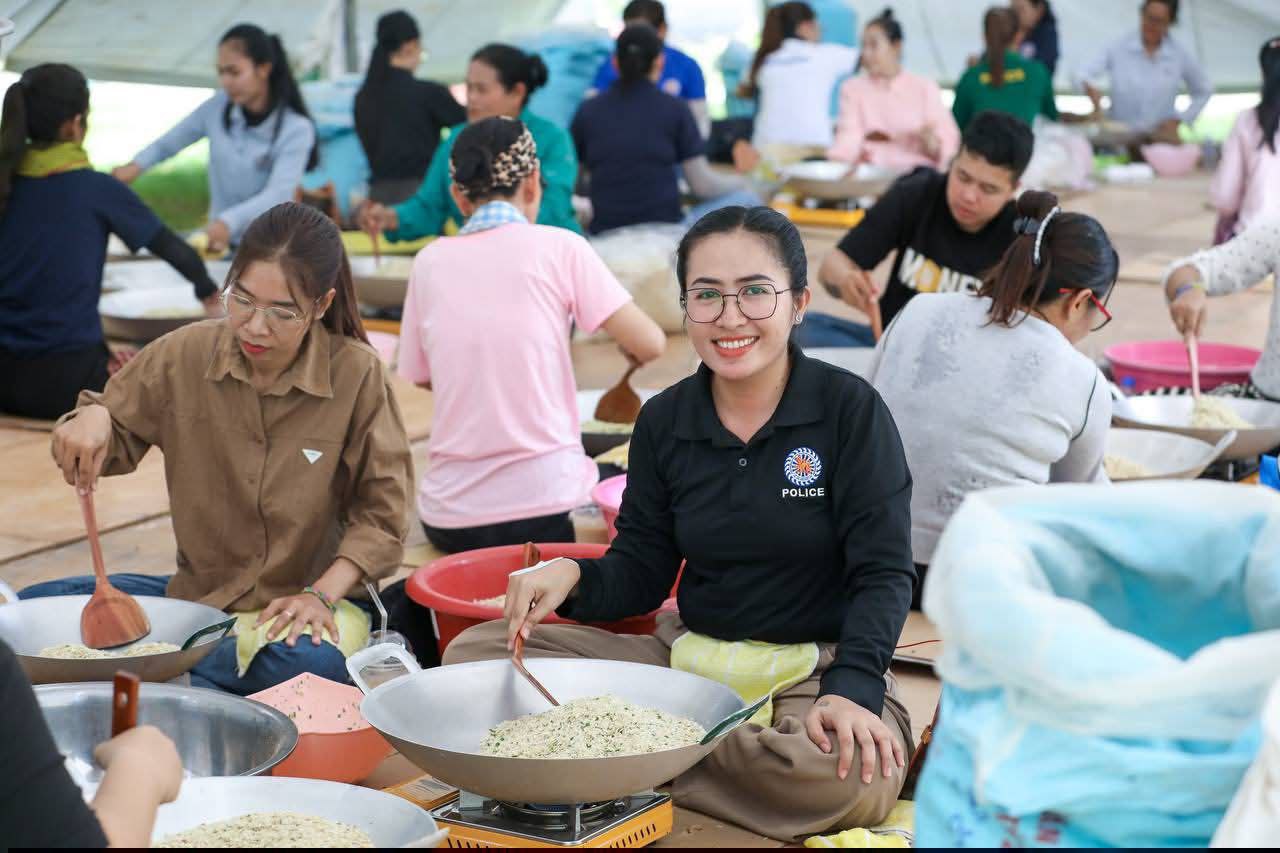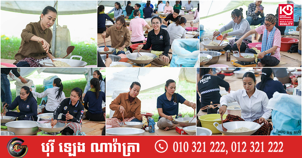 (ព្រៃវែង)៖ ស្របជាមួយពាក្យស្លោករបស់សម្ដេចតេជោ ហ៊ុន សែន ប្រធានព្រឹទ្ធសភានៃកម្ពុជា «ទទួលទានអំបុកស្រូវថ្មី វាយសត្រូវឈ្លានពាន» លោកស្រី ជុន បូរ៉ានី ភរិយារបស់ លោក សួន សុម៉ាលីន អភិបាលខេត្តព្រៃវែង និងលោកស្រីអភិបាលរងខេត្ត រួមជាមួយមន្ត្រីនៃស្នងការនគរបាលខេត្ត និងអធិការក្រុង ព្រមទាំងក្រុមការងារ បានបន្តចូលរួមលីងអំបុក ដើម្បីផ្ញើជូនដល់វីរកងទ័ពជួរមុខកម្ពុជា ដែលកំពុងឈរជើងការពារទឹកដីពីការឈ្លានពានរបស់ថៃ និងជនភៀសសឹកដែលកំពុងស្នាក់នៅមណ្ឌលសុវត្ថិភាព។