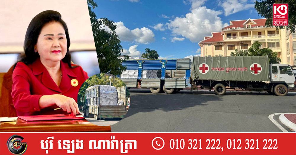 (ភ្នំពេញ)៖ នៅយប់ថ្ងៃទី២៤ ខែធ្នូ ឆ្នាំ២០២៥នេះ សម្តេចកិត្តិព្រឹទ្ធបណ្ឌិត ប៊ុន រ៉ានី ហ៊ុនសែន ប្រធានកាកបាទក្រហមកម្ពុជា បានសម្រេចផ្តល់អង្ករចំនួន ២០តោន, ទឹកបរិសុទ្ធ ២០០កេស និងភេសជ្ជៈ វី-កូឡា ២០០កេស ជូនសាខាកាកបាទក្រហមកម្ពុជា ខេត្តបាត់ដំបង ដើម្បីប្រតិបត្តិការមនុស្សធម៌ចែកជូនប្រជាជនភៀសសឹកនៅតាមជំរំសុវត្ថិភាពក្នុងខេត្តបាត់ដំបង។