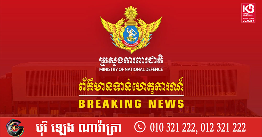 កងកម្លាំងរបស់កម្ពុជាបានប្រយុទ្ធតស៊ូយ៉ាងស្វិតស្វាញប្រឆាំងនឹងសត្រូវឈ្លានពាន និងបន្តតាមដានយ៉ាងយកចិត្តទុកដាក់ និងប្រុងប្រយ័ត្នខ្ពស់ជានិច្ចក្នុងការបំពេញតួនាទីការពារបូរណភាពទឹកដីរបស់កម្ពុជាយ៉ាងម៉ឺងម៉ាត់បំផុត។ ព័ត៌មានលម្អិតនឹងរាយការណ៍ជូននៅពេលក្រោយ៕