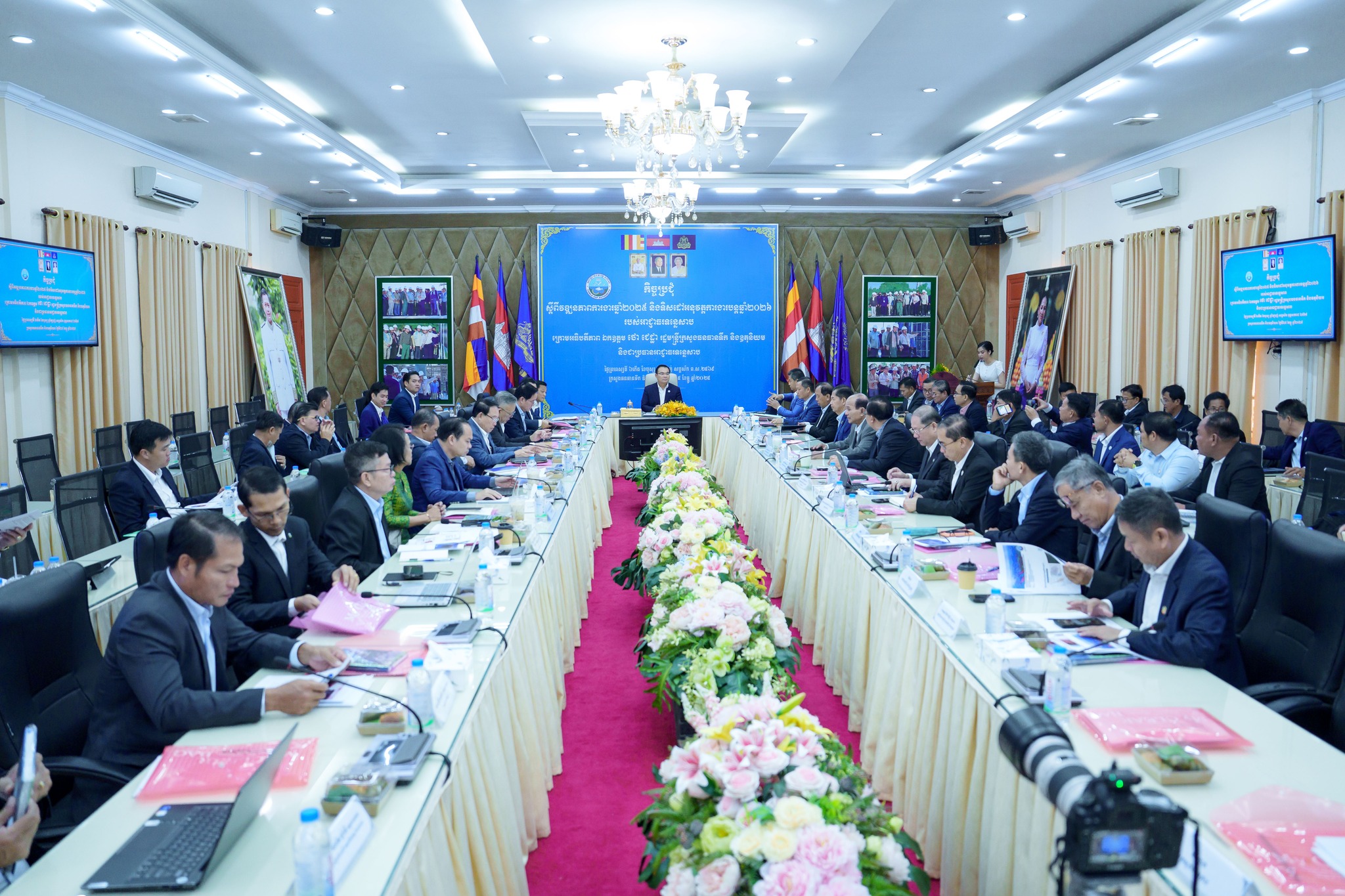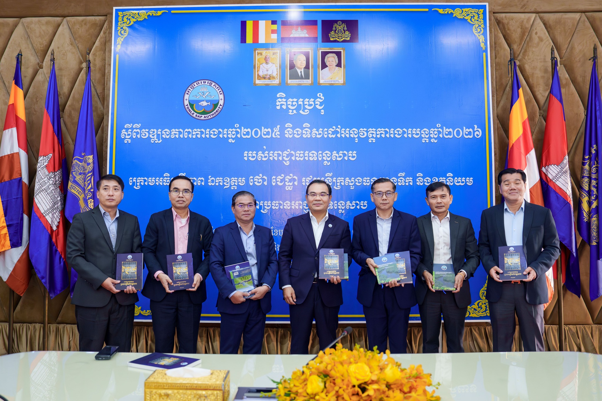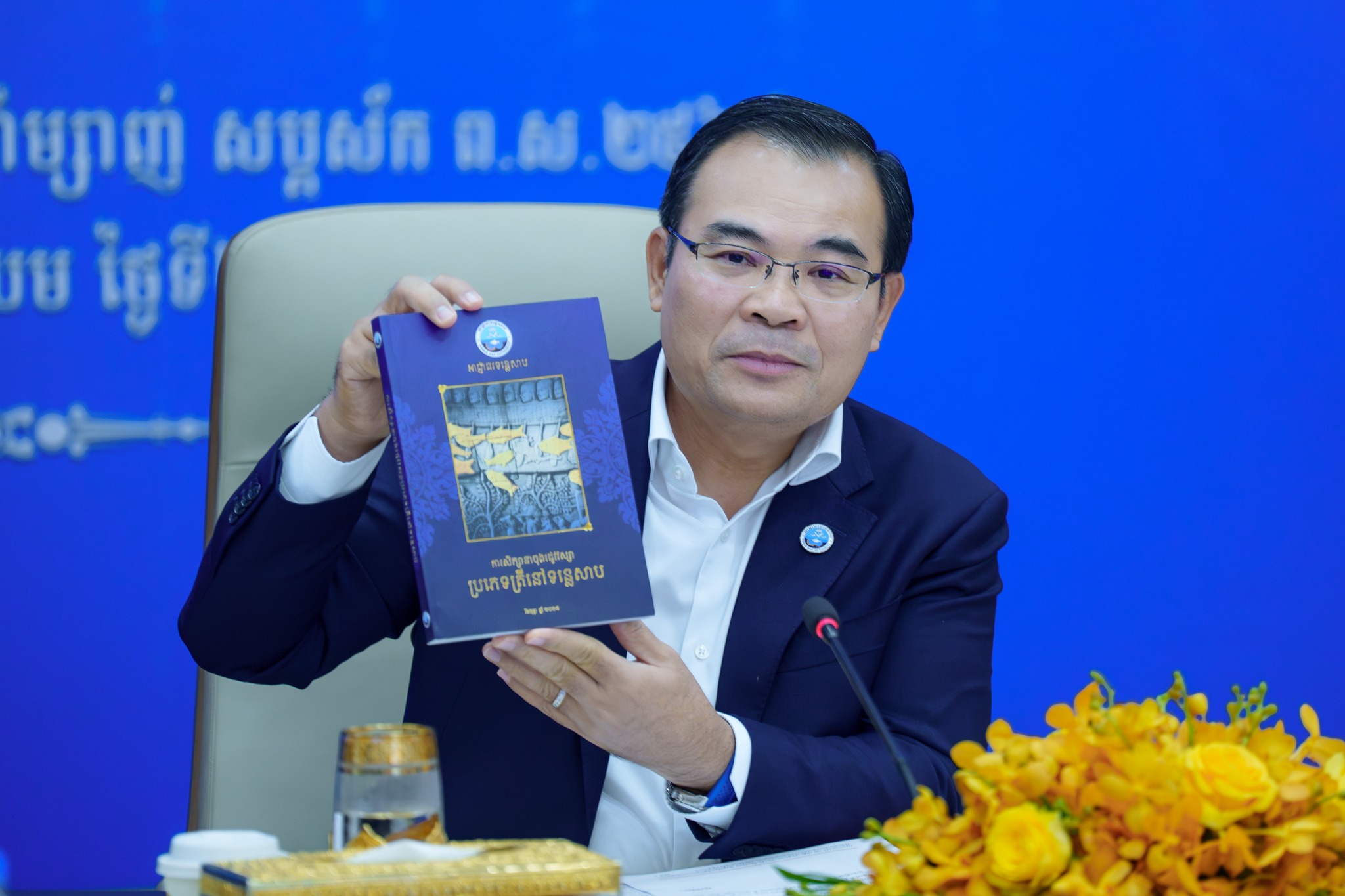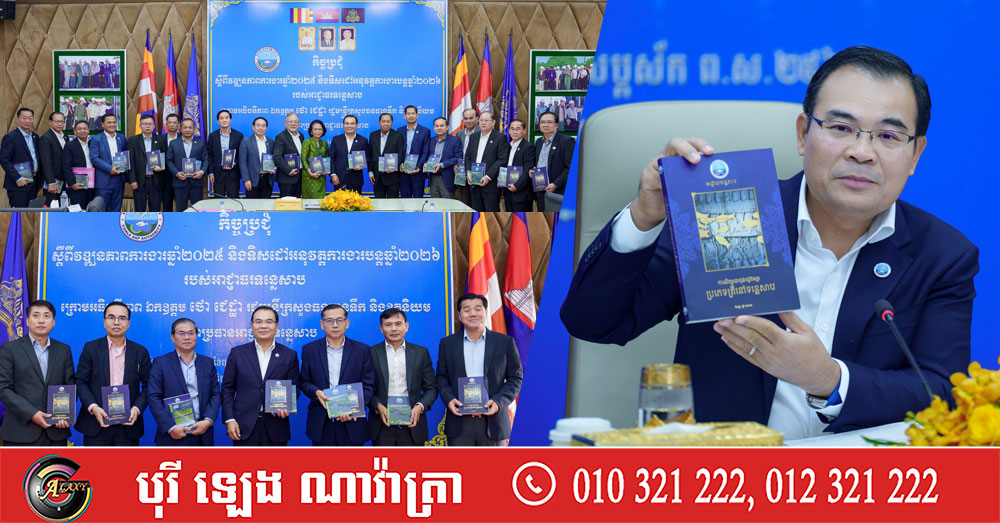 (ភ្នំពេញ)៖ នាព្រឹកថ្ងៃព្រហស្បតិ៍ ទី២៥ ខែធ្នូ ឆ្នាំ២០២៥នេះ លោក ថោ ជេដ្ឋា រដ្ឋមន្ត្រីក្រសួងធនធានទឹក និងឧតុនិយម និងជាប្រធានអាជ្ញាធរទន្លេសាប បានអញ្ជើញជាអធិបតីភាពដ៏ខ្ពង់ខ្ពស់ដឹកនាំកិច្ចប្រជុំស្ដីពីវឌ្ឍនភាពការងារឆ្នាំ២០២៥ និងទិសដៅអនុវត្តការងារបន្តឆ្នាំ២០២៦ របស់អាជ្ញាធរទន្លេសាប ព្រមទាំងសម្ពោធដាក់ឱ្យប្រើប្រាស់ជាផ្លូវការសៀវភៅស្រាវជ្រាវស្ដីពី «ប្រភេទត្រីនៅទន្លេសាប» និង «ប្រព័ន្ធជីពចរទឹកជំនន់តំបន់ទំនាបត្រូពិក៖បឹងទន្លេសាប ប្រទេសកម្ពុជា» នៅសាលប្រជុំនៃទីស្ដីការក្រសួងធនធានទឹក និងឧតុនិយម។
