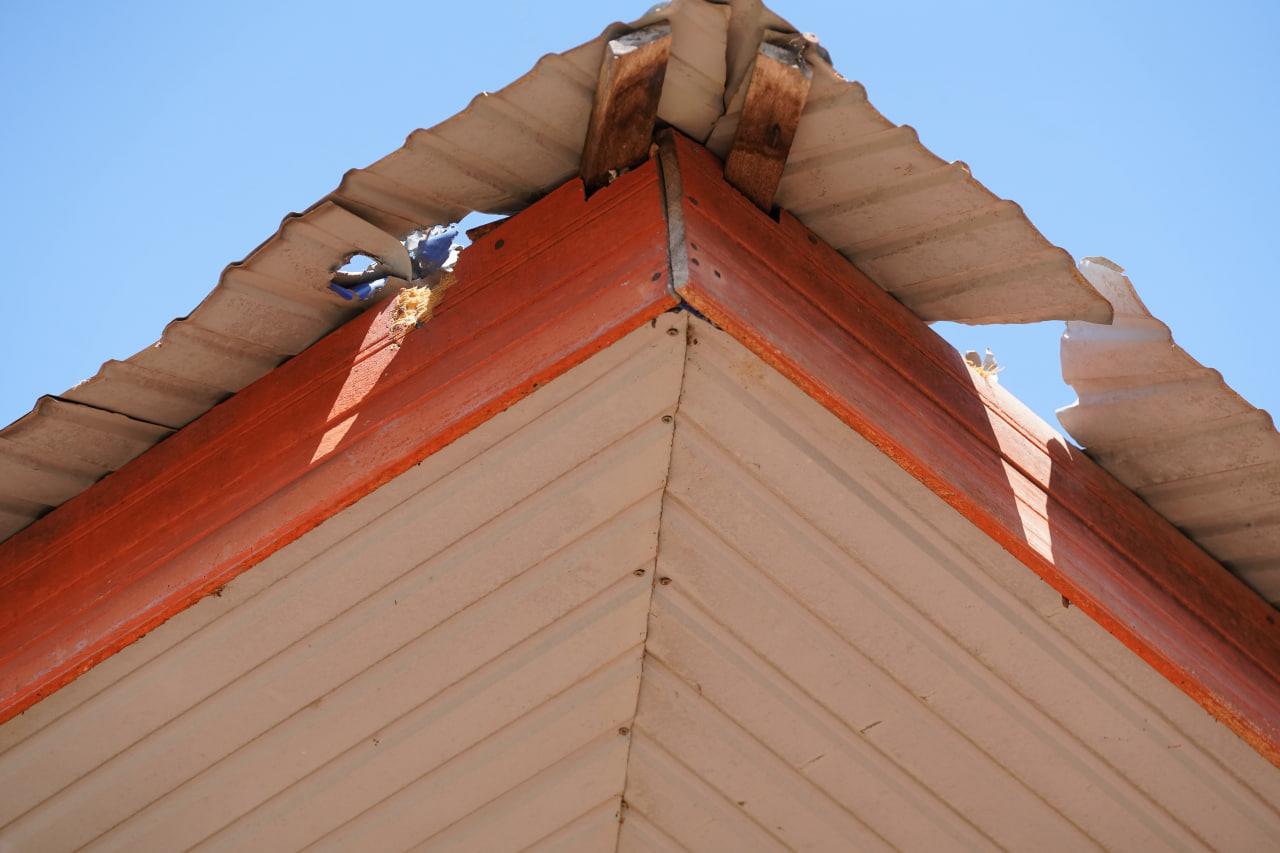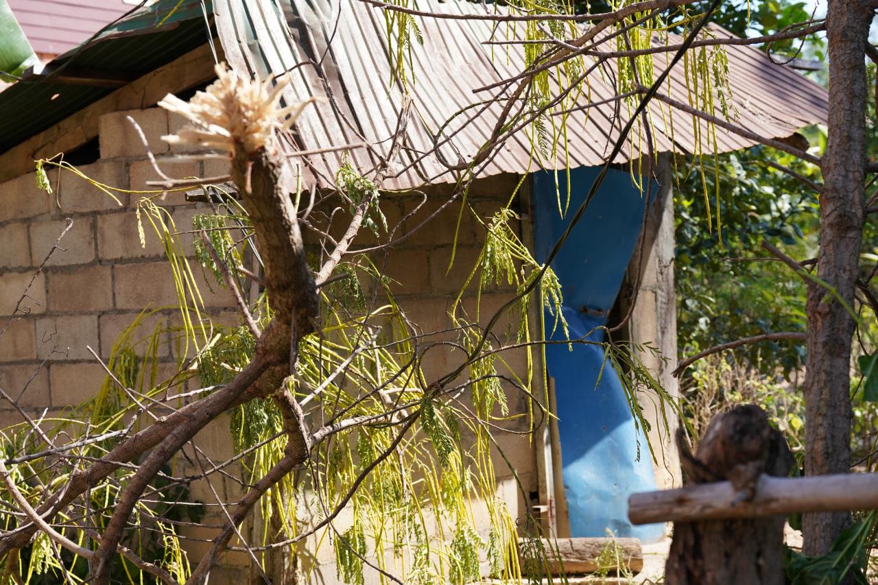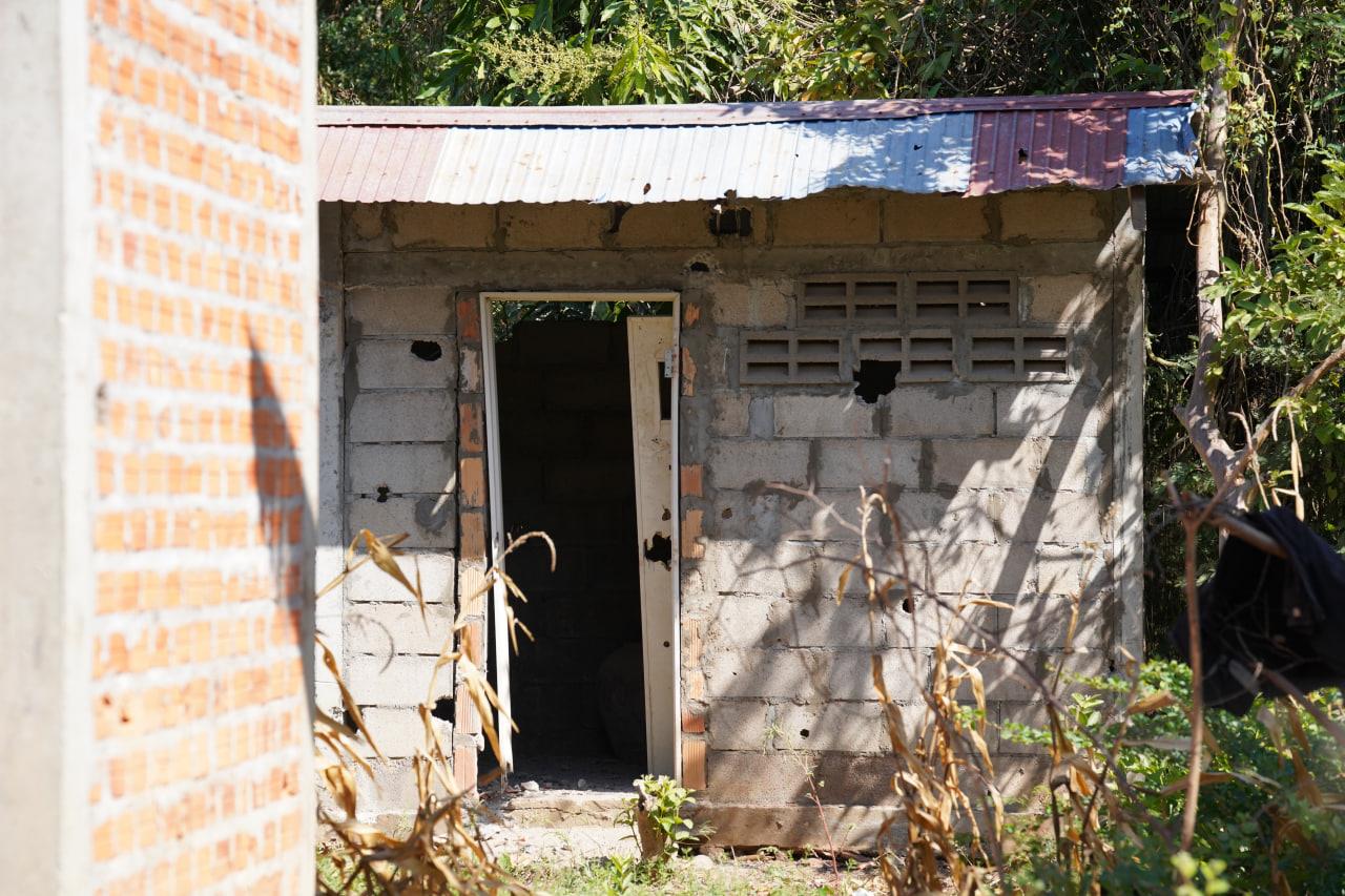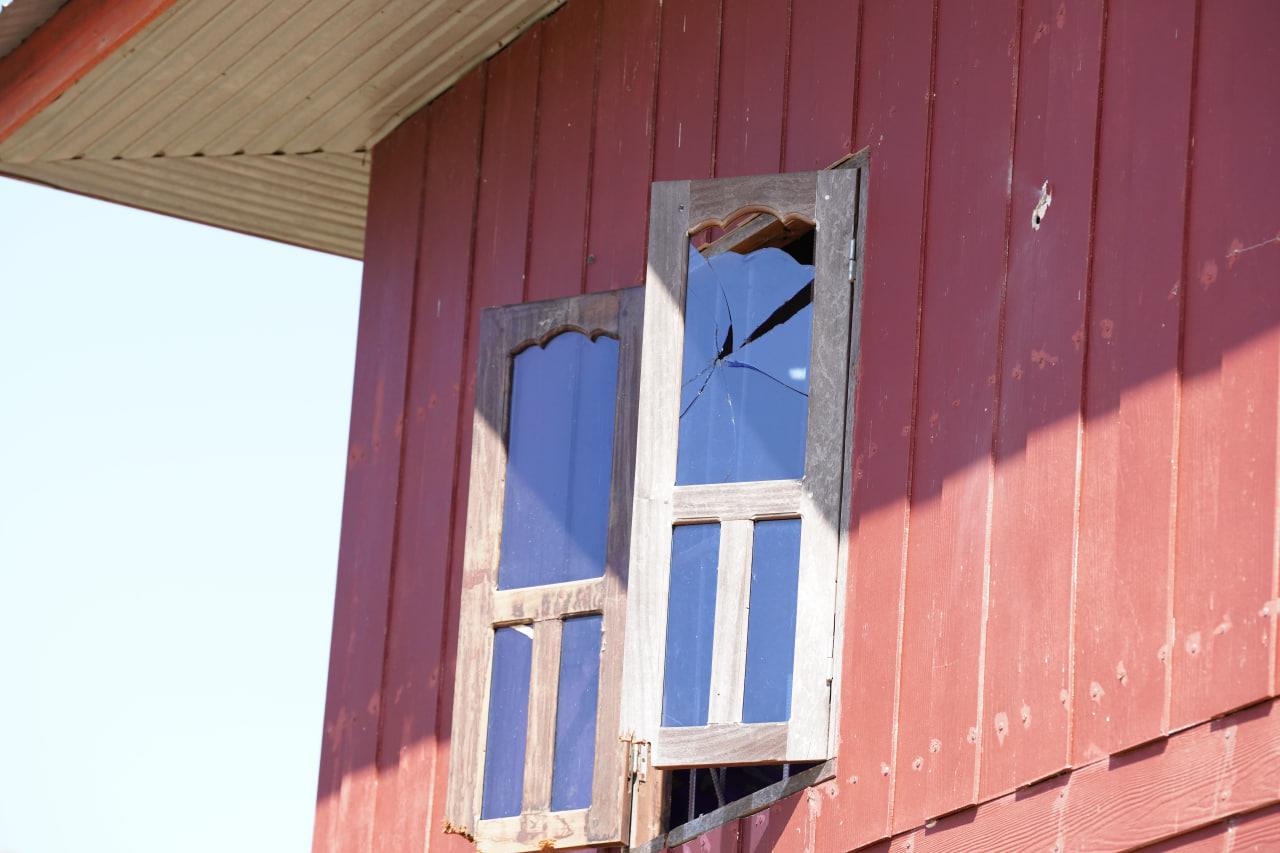 សមរភូមិខេត្តបន្ទាយមានជ័យ សន្ធឹកគ្រាប់បន្តលាន់ឮកងរំពង, អ្នកសារព័ត៌មានឆ្មក់ថតយករូបភាពផ្ទះសម្បែងនៅស្រុកស្វាយចេក ខូចខាតដោយសារទម្ងន់គ្រាប់ឈ្លានពានរបស់កងទ័ពថៃ