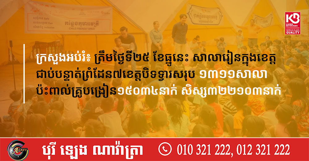ក្រសួងអប់រំ៖ ត្រឹមថ្ងៃទី២៥ ខែធ្នូនេះ សាលារៀនក្នុងខេត្តជាប់បន្ទាត់ព្រំដែន៧ខេត្តបិទទ្វារសរុប ១៣១១សាលា ប៉ះពាល់គ្រូបង្រៀន១៥០៣៤នាក់ សិស្ស៣២២១០៣នាក់ (Video inside)