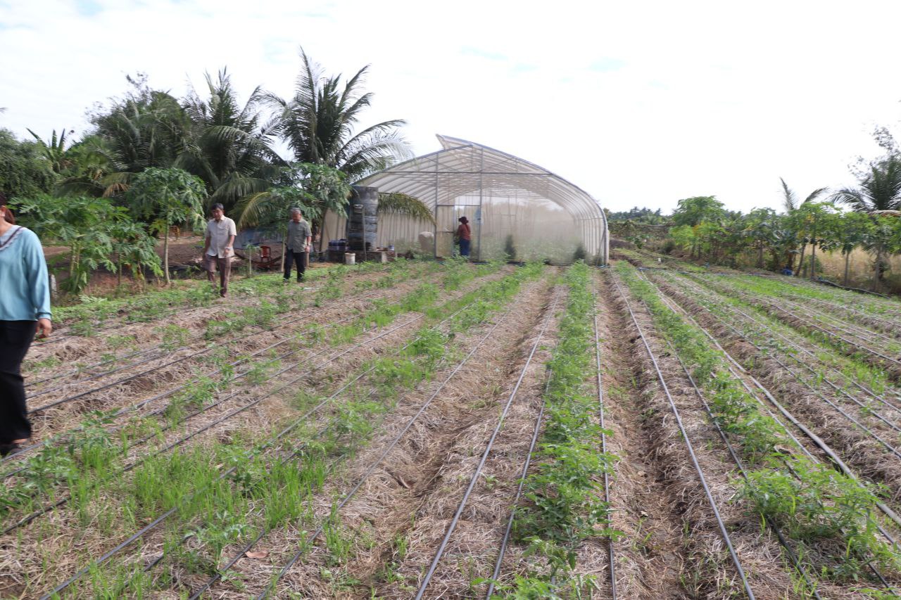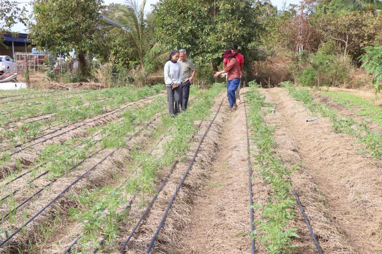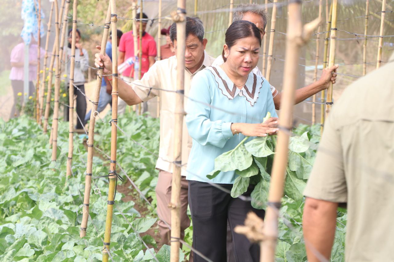 (កំពង់ធំ)៖ លោក ហាក់ ម៉ុងហួត អភិបាលស្រុកតាំងគោក នាព្រឹកថ្ងៃទី២៥ ខែធ្នូ ឆ្នាំ២០២៥ បានដឹកនាំក្រុមការងារ និងមន្រ្តីជំនាញក្រោមឱវាទចុះពិនិត្យមើលស្ថានភាពរស់នៅ និងការដាំដុះរបស់ប្រជាកសិករ ដែលកំពុងដាំដំណាំចម្ការមានដូចជា៖ ស្ពៃ ខាត់ណា ប៉េងប៉ោះឆឺររី ពោត ម្ទេសជាដើមក្នុងឃុំច្រនាង ស្រុកតាំងគោក ខេត្តកំពង់ធំ។