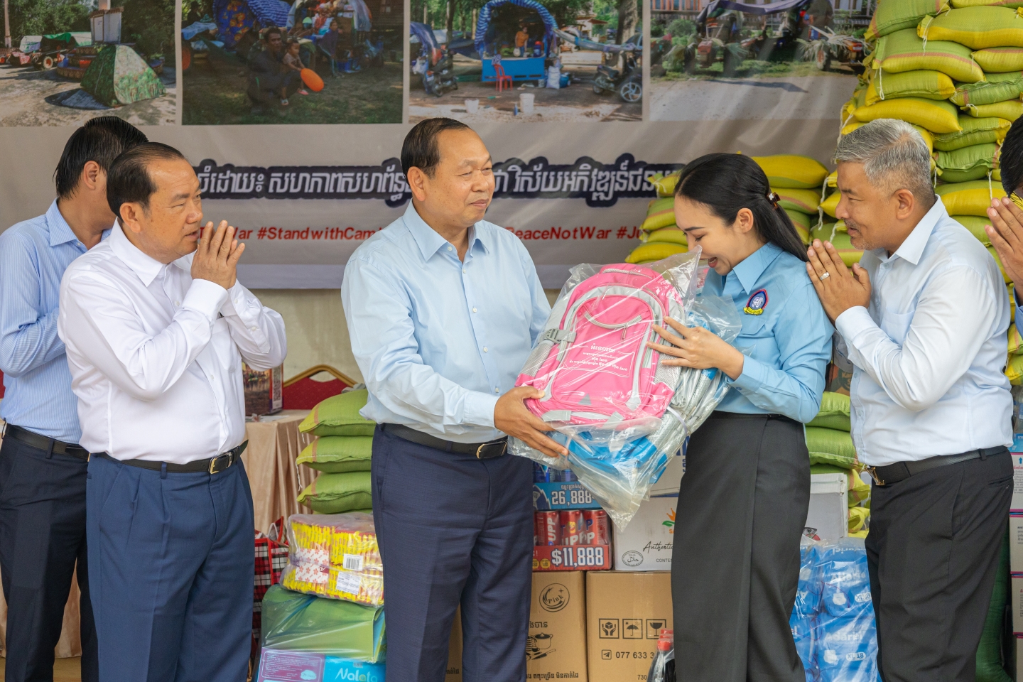 ក្នុងឱកាសនោះ លោករដ្ឋមន្ដ្រី បានគូសបញ្ជាក់ជូនថា ការប្រគល់អំណោយនេះ សបញ្ជាក់អំពីការចេះយកអាសារគ្នា ក្នុងស្មារតីសាមគ្គីភាពខ្មែរតែមួយ របស់ប្រជាពលរដ្ឋនៅទូទាំងប្រទេស ស្របតាមការអំពាវនាវរបស់រាជរដ្ឋាភិបាល ក្នុងការចូលរួមលះបង់ធនធាន និងកម្លាំងកាយ ចិត្ត ឧបត្ថម្ភជាថវិកា និងសម្ភារផ្សេងៗ ដើម្បីសម្រាលការលំបាករបស់គ្រួសារវីរកងទ័ព និងប្រជាពលរដ្ឋភៀសសឹក។