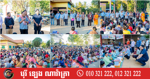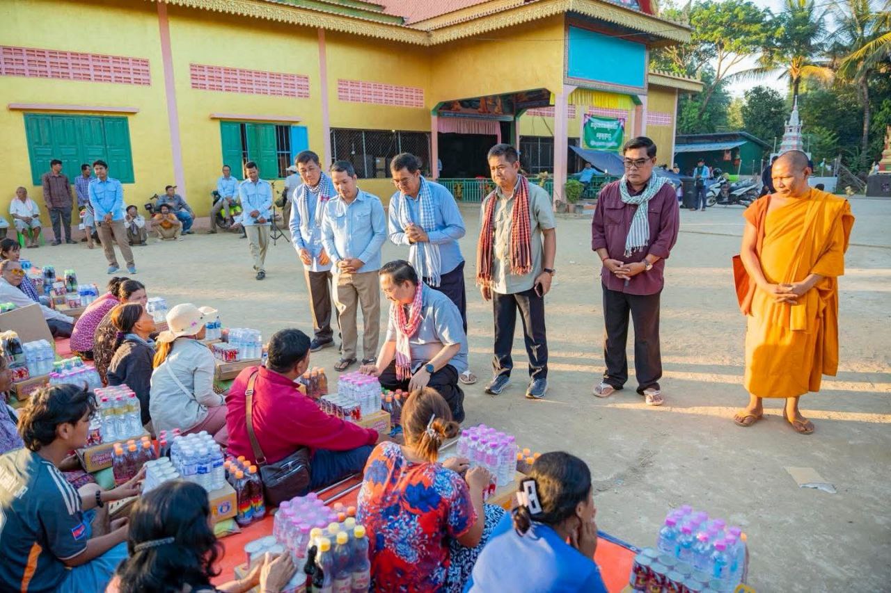 (បាត់ដំបង)៖ លោក សុខ លូ អភិបាលខេត្តបាត់ដំបង និងក្រុមការងារ នារសៀលថ្ងៃទី២៥ ខែធ្នូ ឆ្នាំ២០២៥នេះ បានបន្តអញ្ជើញជួបសំណេះសំណាលសួរសុខទុក្ខ និងនាំយកអំណោយដែលទទួលបានពីសប្បុរសជននានា មានគ្រឿងឧបភោគបរិភោគ និងសម្ភារប្រើប្រាស់ចាំបាច់ផ្សេង ចុះឧបត្ថម្ភជូនបងប្អូនភៀសសឹកនៅមណ្ឌលសុវត្ថិភាពចំនួន ២ទីតាំងទៀត ក្នុងនោះមានមណ្ឌល សុវត្ថិភាពវត្តដង្កោក្រម៉ាង ចំនួន ២៣៩គ្រួសារ និងមណ្ឌលសុវត្ថិភាពវត្តស្លខ្លាញ់ ចំនួន ១៩៥គ្រួសារ ស្ថិតក្នុងស្រុកបវេល។