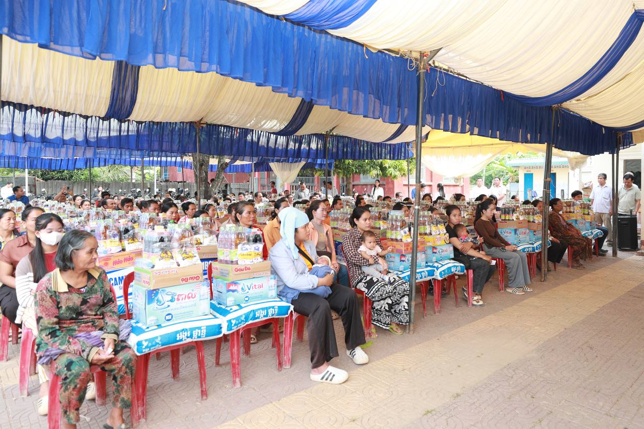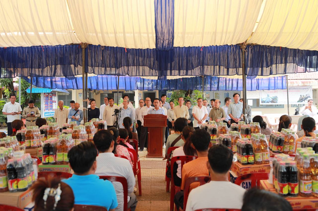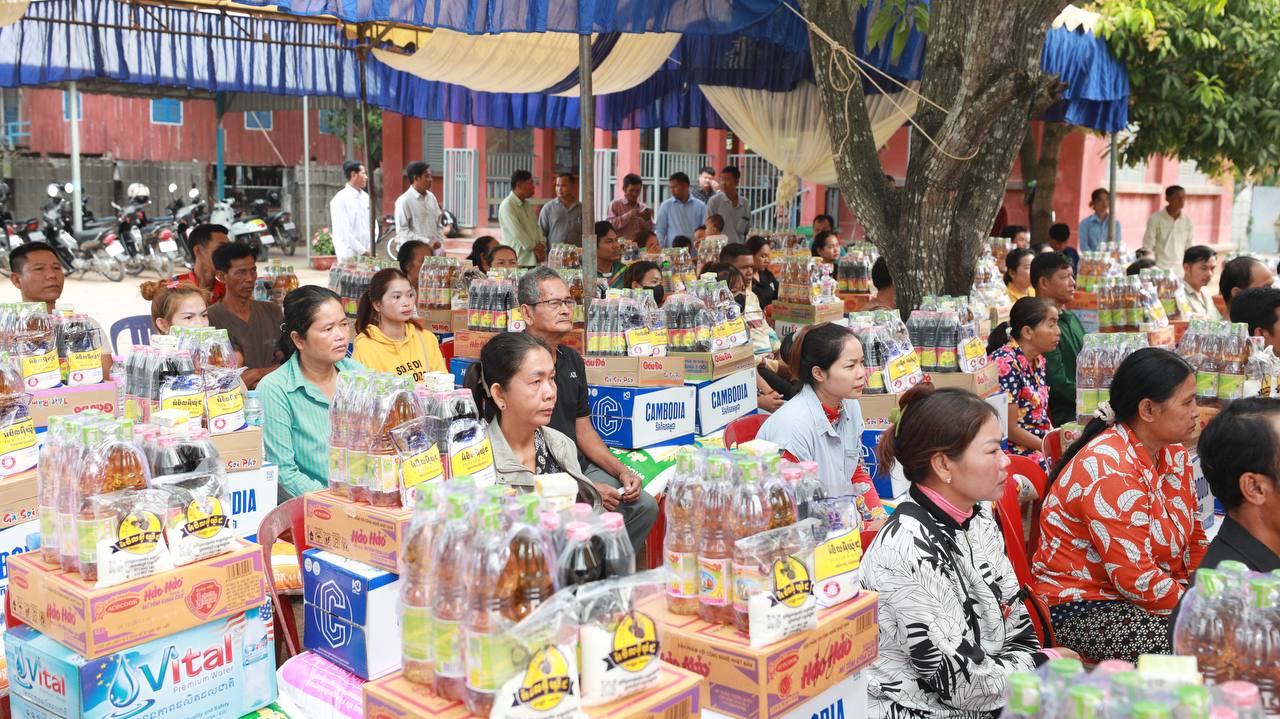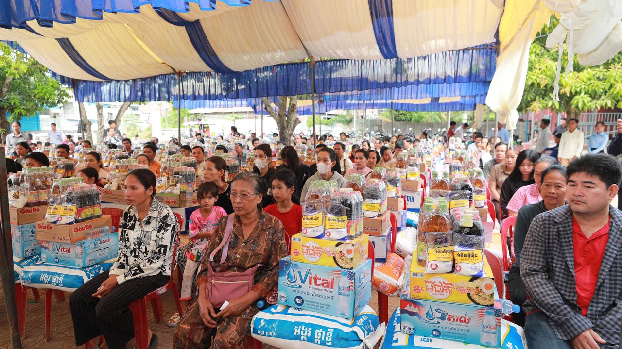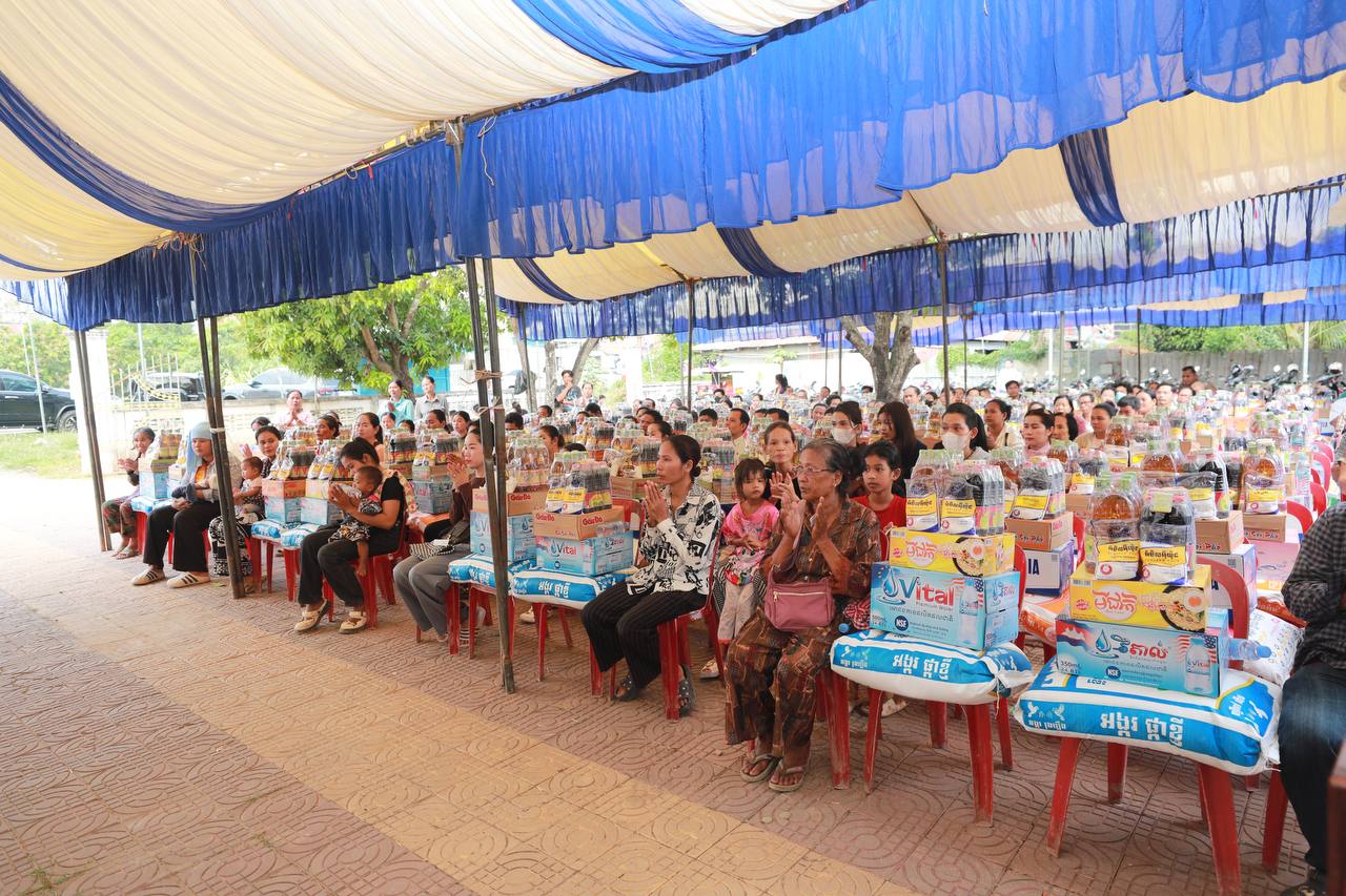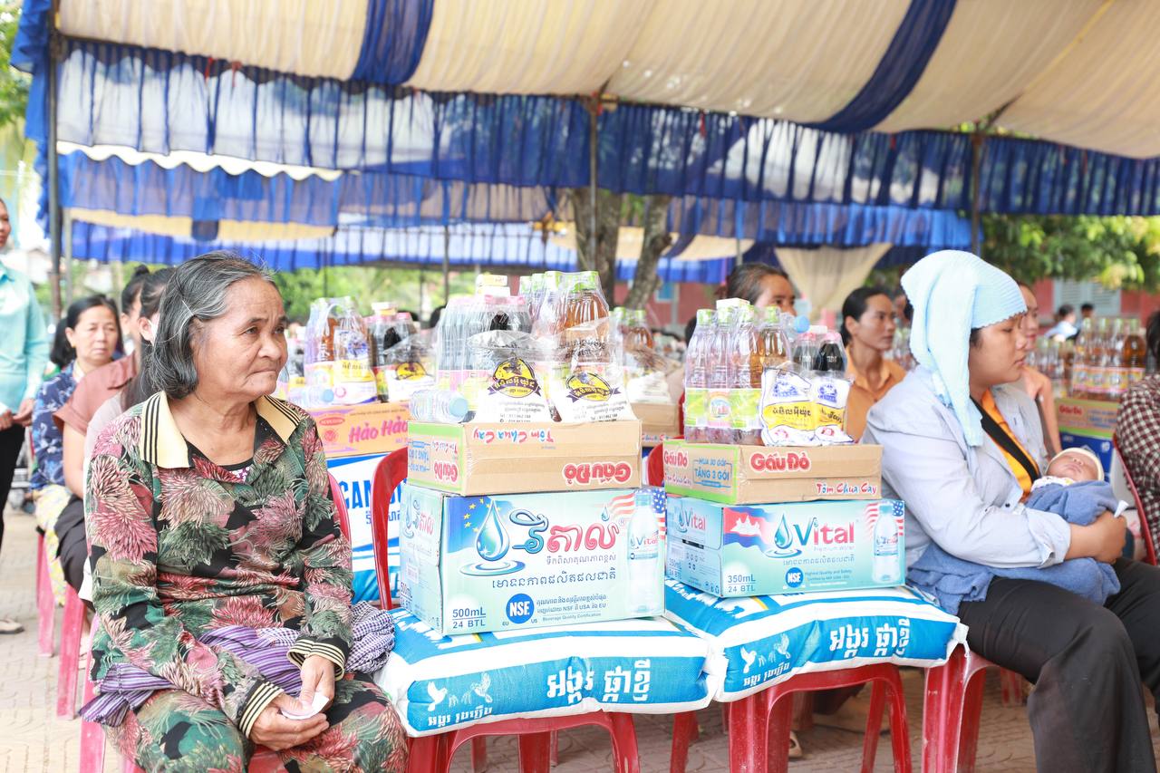 អង្ករ ១បាវ ទម្ងន់២៥គីឡូក្រាម, ទឹកសុទ្ធ ១កេះ, មី ១កេះ, ទឹកត្រី ១យួរ, ទឹកស៊ីអ៉ីវ ១យួរ, អំបិល ១គីឡូ, សាប៊ូ ២ដុំ និងថវិកា ក្នុង១គ្រួសារ ចំនួន ១១ម៉ឺនរៀលផងដែរ៕