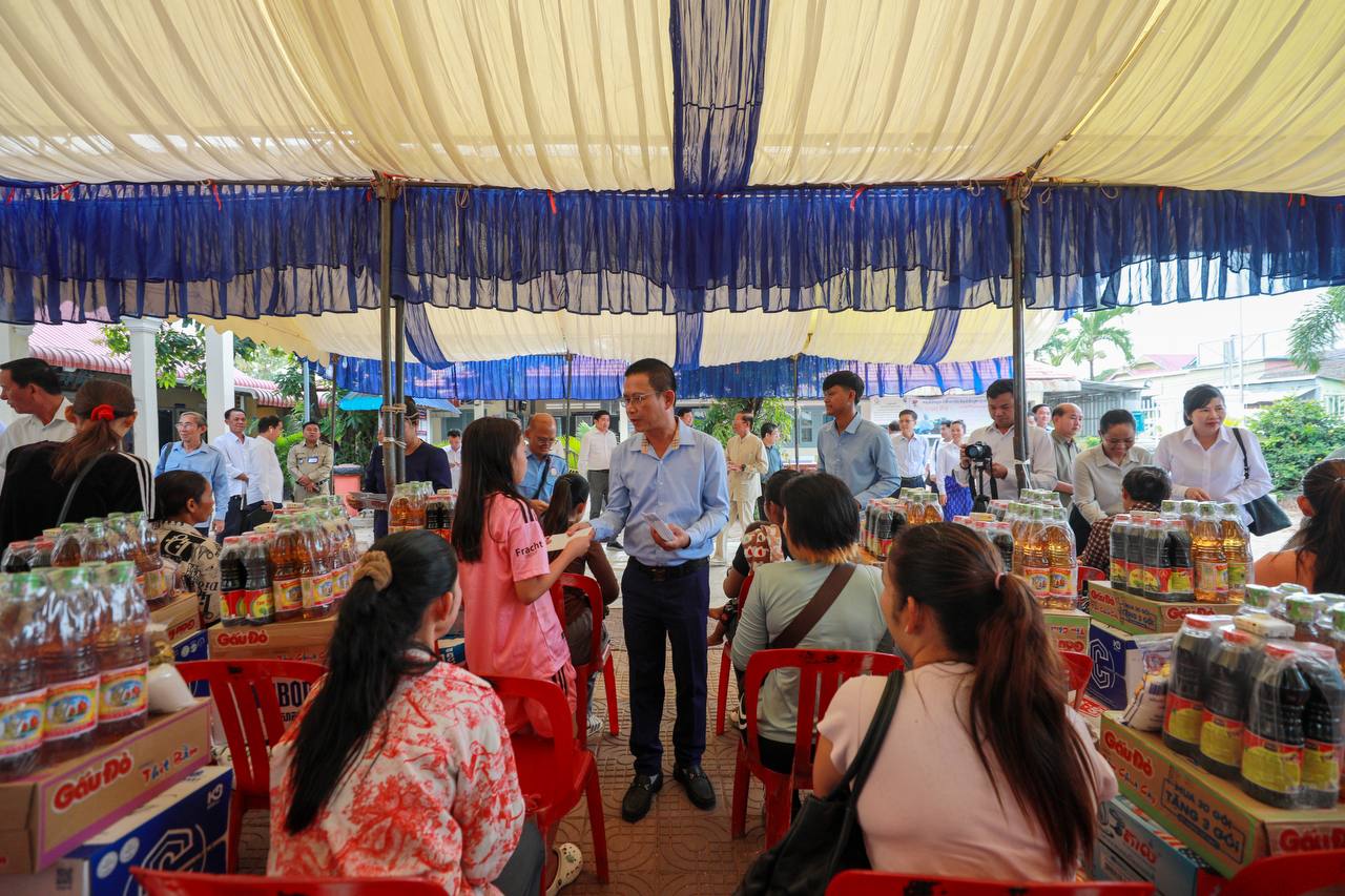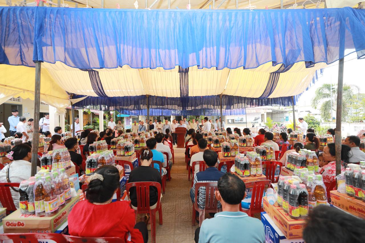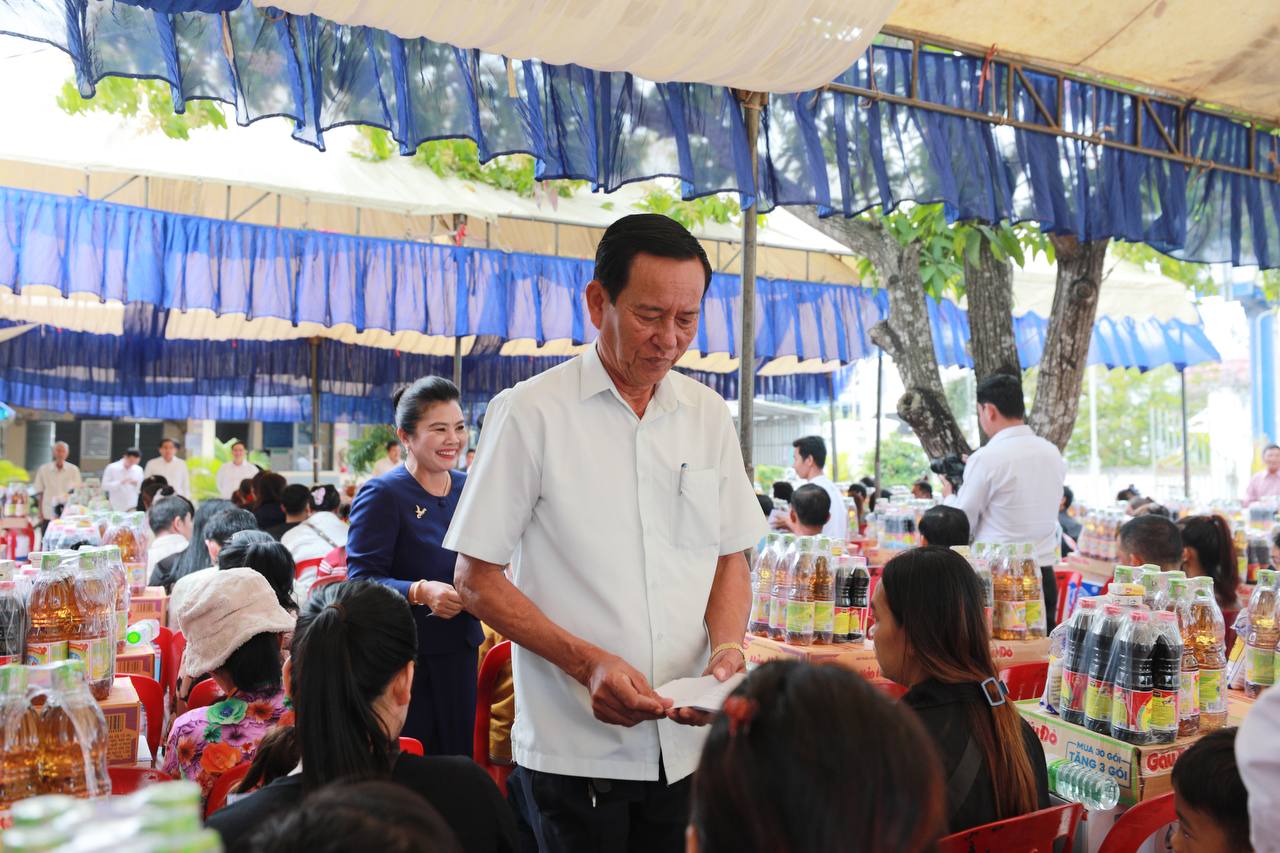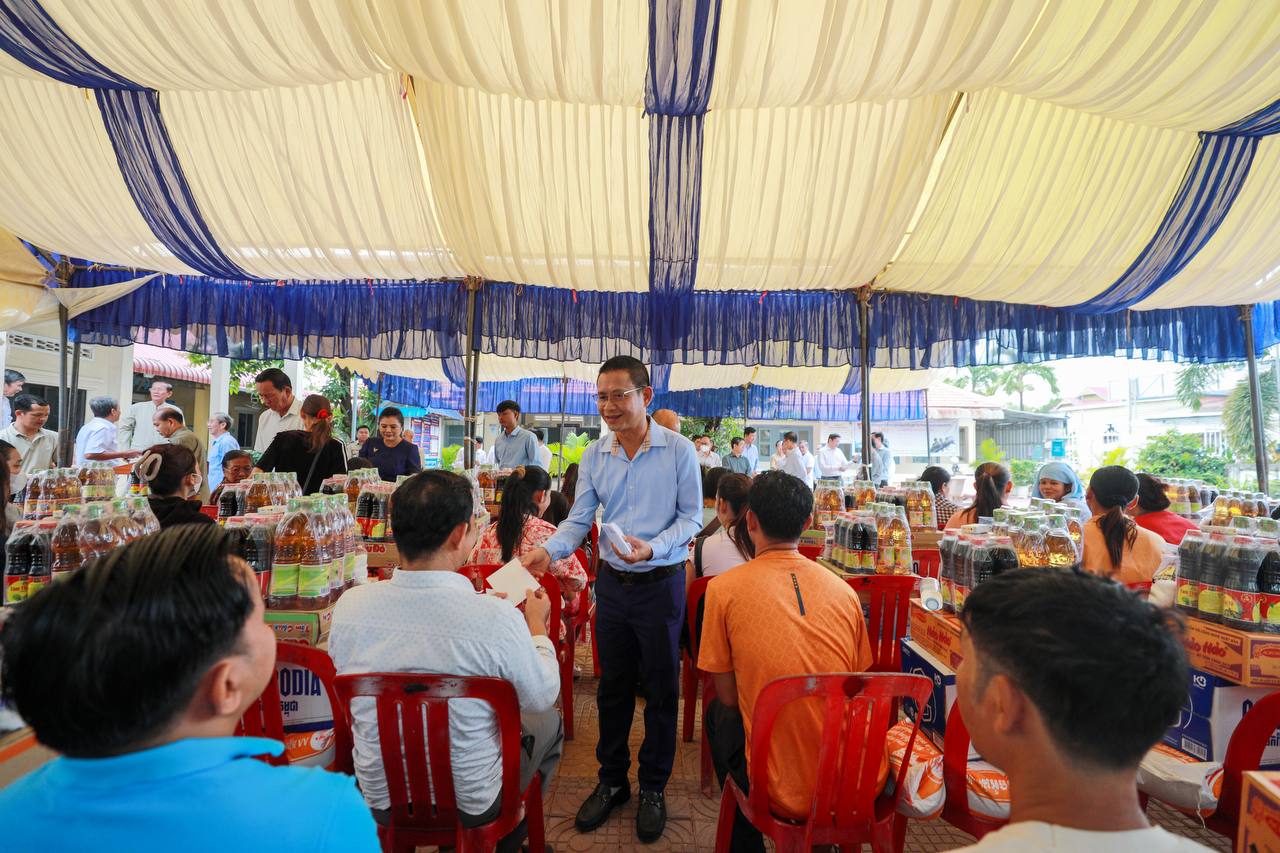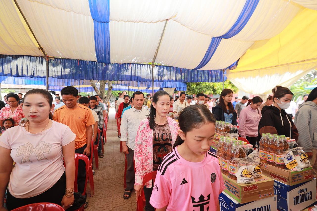អង្ករ ១បាវ ទម្ងន់២៥គីឡូក្រាម, ទឹកសុទ្ធ ១កេះ, មី ១កេះ, ទឹកត្រី ១យួរ, ទឹកស៊ីអ៉ីវ ១យួរ, អំបិល ១គីឡូ, សាប៊ូ ២ដុំ និងថវិកា ក្នុង១គ្រួសារ ចំនួន ១១ម៉ឺនរៀលផងដែរ៕