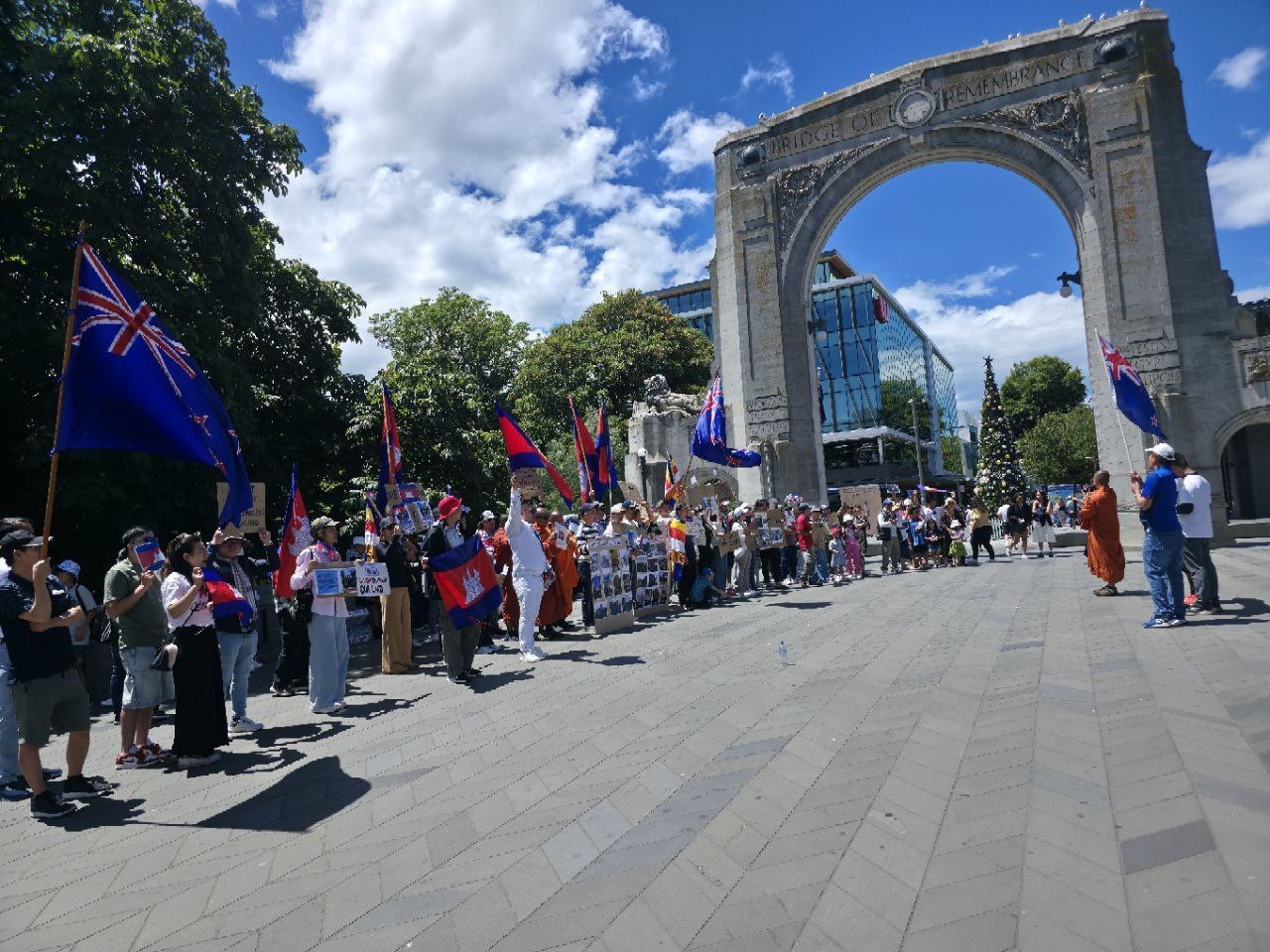 (នូវ៉ែលហ្សេឡង់)៖ ប្រជាពលរដ្ឋខ្មែរ រស់នៅក្នុងទីក្រុងក្រៃឈើច ប្រទេសនូវ៉ែលហ្សេឡង់ ប្រមាណជាង៣០០នាក់ នៅព្រឹកថ្ងៃទី២៦ ខែធ្នូ ឆ្នាំ២០២៥ បានជួបជុំគ្នា ដើម្បីប្រកាសថ្កោលទោស នៃការឈ្លានពានរបស់ថៃ មកលើអធិបតេយ្យកម្ពុជា។