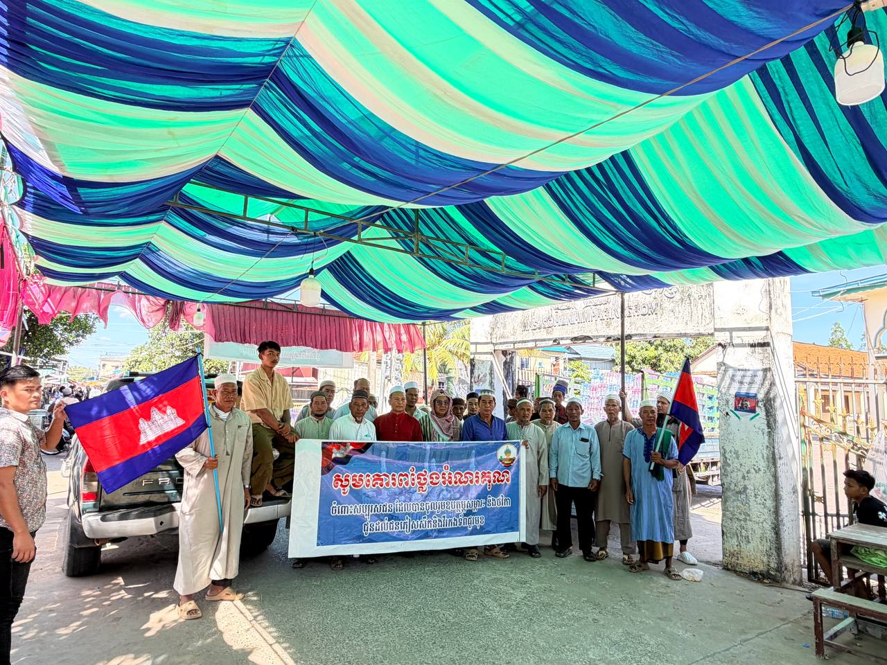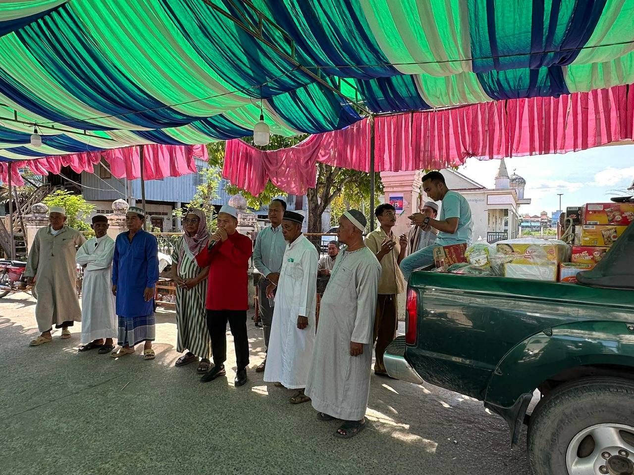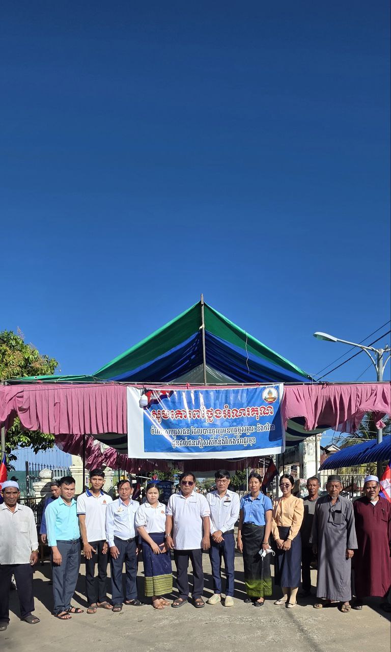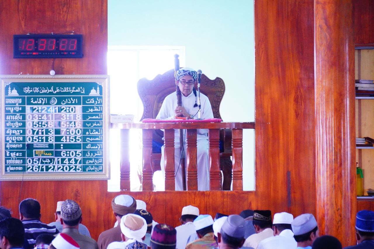 (កណ្ដាល)៖ លោក ស៊ូ សេន អ៊ីម៉ាំខេត្ត និងជាសមាជិកក្រុមប្រឹក្សាខេត្តកណ្ដាល នាថ្ងៃសុក្រទី២៦ ខែធ្នូ ឆ្នាំ២០២៥នេះ ត្រូវនឹងថ្ងៃសិល៍នៃសាសនាឥស្លាម បានដឹកនាំសហគមន៍ បងប្អូនមូស្លីមស្ថិតនៅក្រុងតាខ្មៅ ថ្វាយបង្គុំជុំអាត់ និងថ្វាយបង្គុំស៊ូណិតហាជិតទៅកាន់អស់ឡោះជាម្ចាស់ ( ព្រះជាម្ចាស់ ) ដើម្បីសុំពរជ័យសិរីសួស្ដី សុភមង្គល សេចក្ដីសុខ សន្តិភាព និងសុំពរជ័យពីព្រះជួយដល់កងទ័ពខ្មែរឈ្នះអស់មារសត្រូវទាំងឡាយ គឺចោរសៀមឈ្លានពានមកលើទឹកដីកម្ពុជា ។