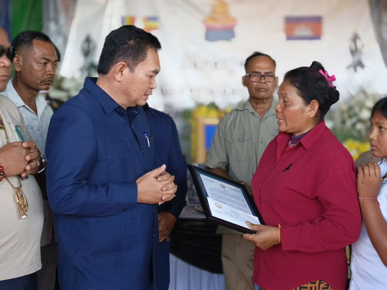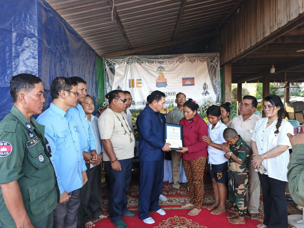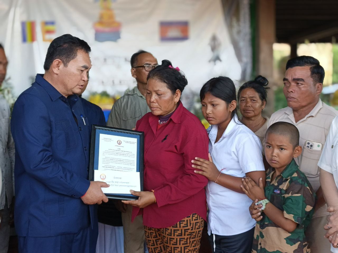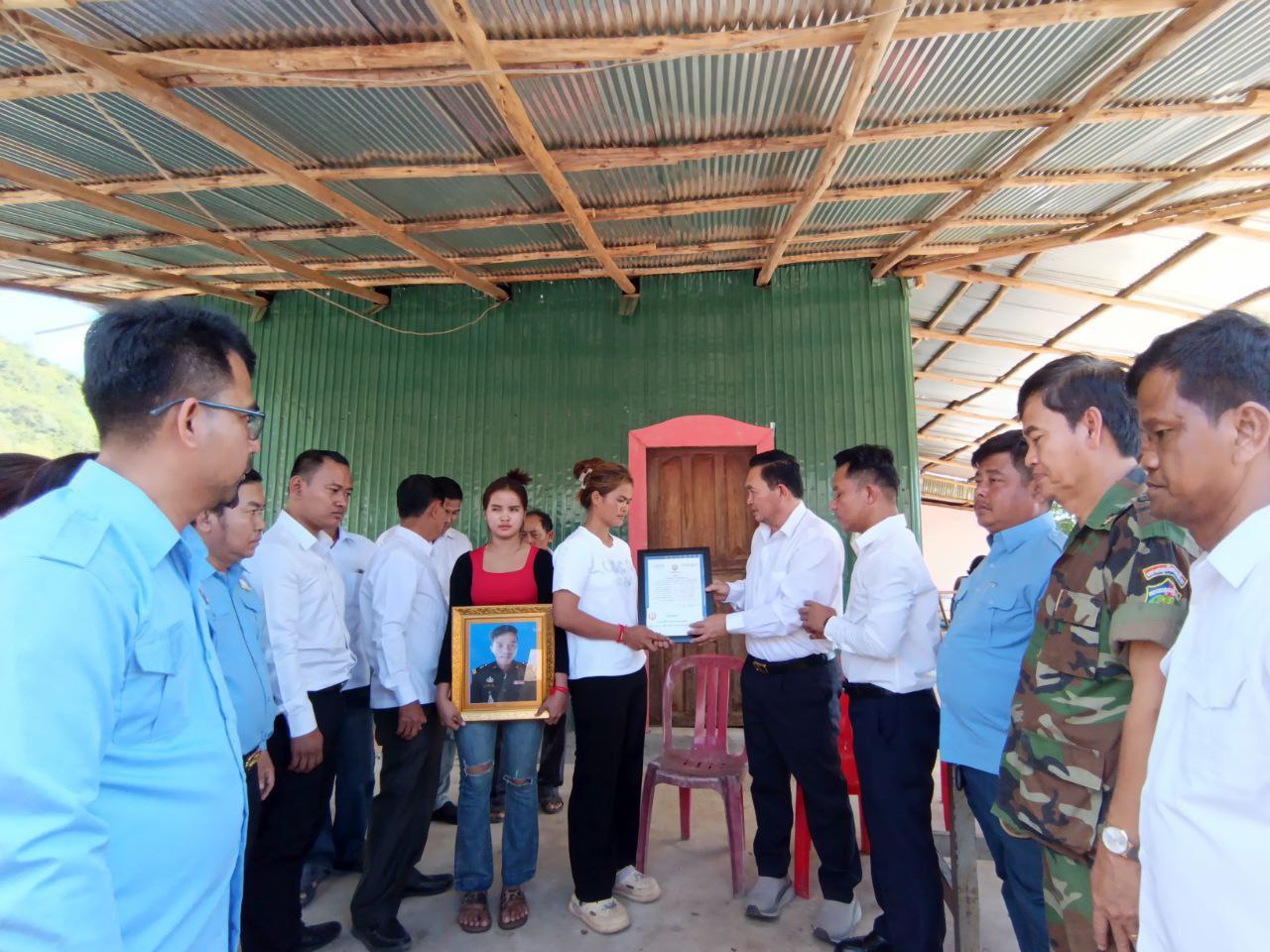 ជួសមុខឲ្យលោក យូ សិរីវុឌ្ឍ និងលោក ភឺន ផល្លា, លោក ហ៊ុន សុខា បានពាំនាំនូវសារលិខិតរំលែកទុក្ខ និងថវិកាជូនដល់គ្រួសារសព ដែលបានពលីជីវិតដើម្បីជាតិមាតុភូមិ ការពារអធិបតេយ្យភាព និងបូរណភាពទឹកដី និងប្រជាជនកម្ពុជា ពីសំណាក់ចោសៀមឈ្លានពានទឹកដីកម្ពុជាយើង ព្រោះគ្រួសាររបស់គាត់បានលះបង់សាច់ស្រស់ឈាមស្រស់ ពលីជីវិតលើសមរភូមិដើម្បីការពារជាតិមាតុភូមិនិងបូរណភាពទឹកដី ។