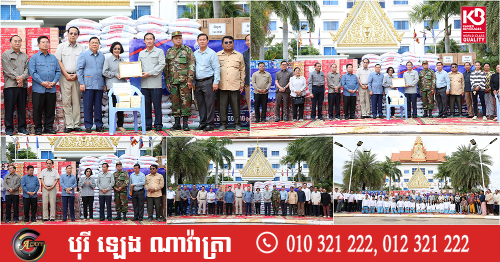 សូមជម្រាបជូនថា អំណោយដ៏ថ្លៃថ្លារបស់សម្តេចមហារដ្ឋសភាធិការធិបតី ឃួន សុដារី ប្រធានរដ្ឋសភា និងអំណោយមូលនិធិសប្បុរសធម៌ ប៊ែលធី (BELTEI Charity) សម្រាប់ប្រគល់ជូន វីរកងទ័ព រួមមាន៖ ថវិកា ចំនួន ៦០,០០០,០០០៛ (ហុកសិបលានរៀល) អង្ករ ចំនួន ៥តោន អំបុក ចំនួន ៥,០០០ដប (៦០០គីឡូក្រាម) ត្រីខ ចំនួន៥០០យួរ មីជាតិ ចំនួន៥០០កេសទឹកសុទ្ធ ចំនួន៥០០កេស និងឆៃប៉ូវ ចំនួន៥០០គីឡូក្រាម៕
