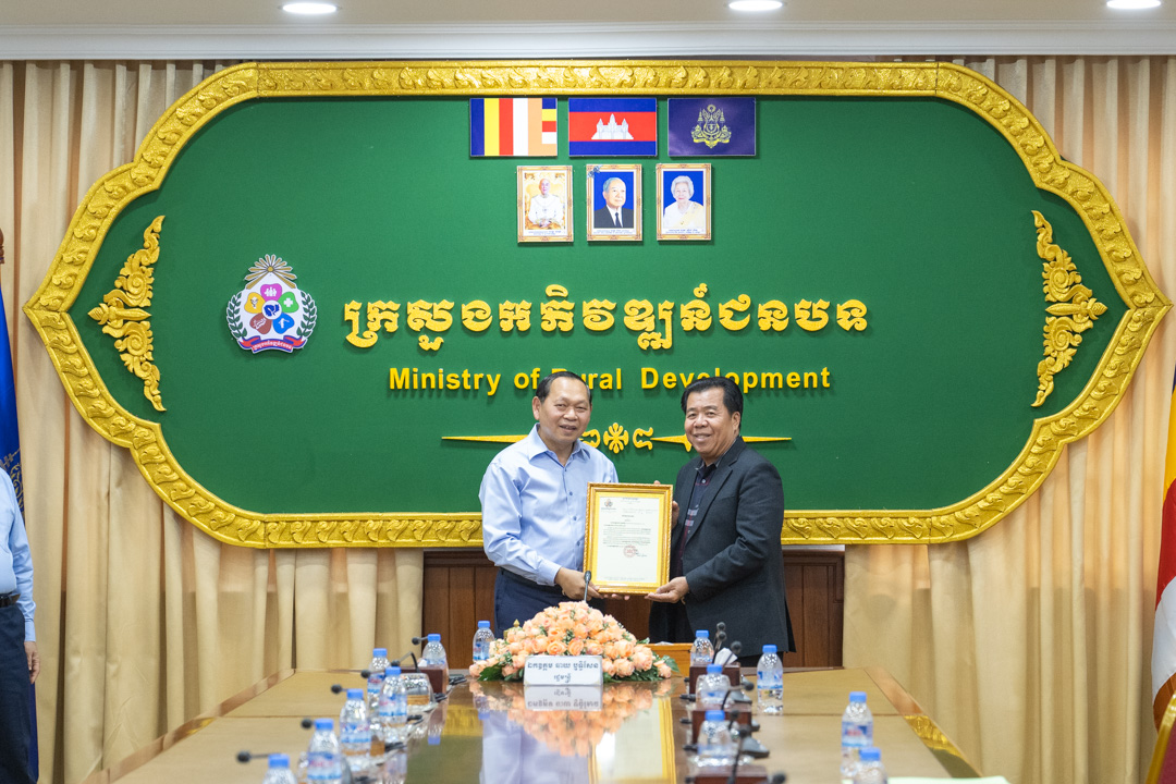 រដ្ឋមន្ដ្រីក្រសួងអភិវឌ្ឍន៍ជនបទ ទទួលអំណោយដែលជាការឧបត្ថម្ភពី ក្រុមហ៊ុន Ung Sim Sia Construction Co.,Ltd ដើម្បីយកទៅឧបត្ថម្ភដល់គ្រួសារវីរកងទ័ព និងជនភៀសសឹកកម្ពុជា