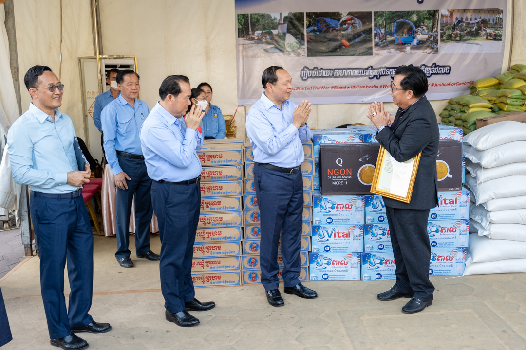 ក្នុងឱកាសនោះដែរ លោករដ្ឋមន្ដ្រី បានថ្លែងអំណរគុណយ៉ាងជ្រាលជ្រៅ ចំពោះសន្ដានចិត្តប្រកបដោយសប្បុរសធម៌របស់លោកអគ្គនាយក ដែលជាការសបញ្ជាក់អំពីស្មារតីសាមគ្គីភាពខ្មែរតែមួយ របស់ប្រជាពលរដ្ឋនៅទូទាំងប្រទេស ស្របតាមការអំពាវនាវរបស់រាជរដ្ឋាភិបាល ក្នុងការចូលរួមលះបង់ធនធាន ដើម្បីជួយសម្រាលដល់ការលំបាករបស់គ្រួសារវីរកងទ័ព និងប្រជាពលរដ្ឋភៀសសឹក។