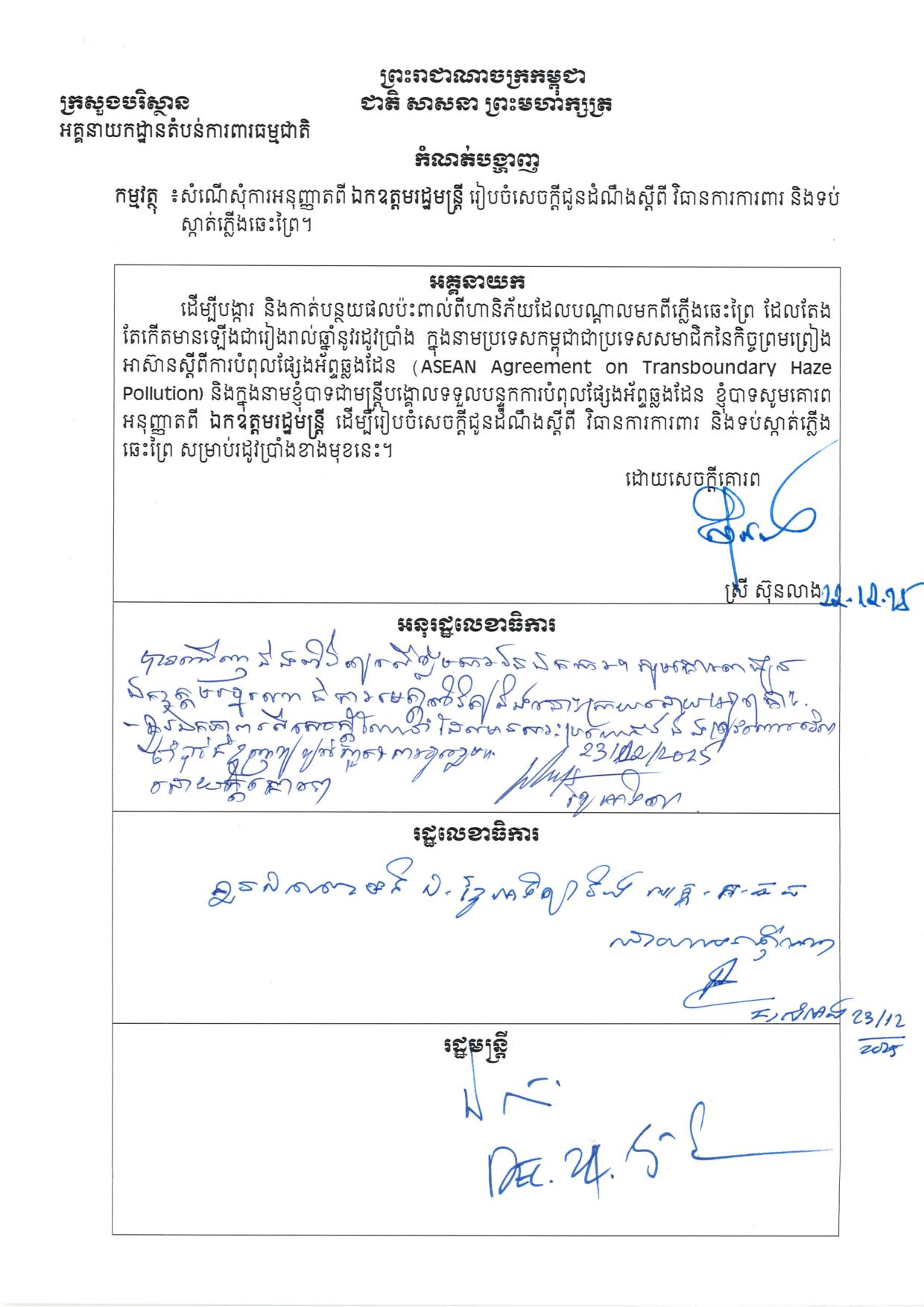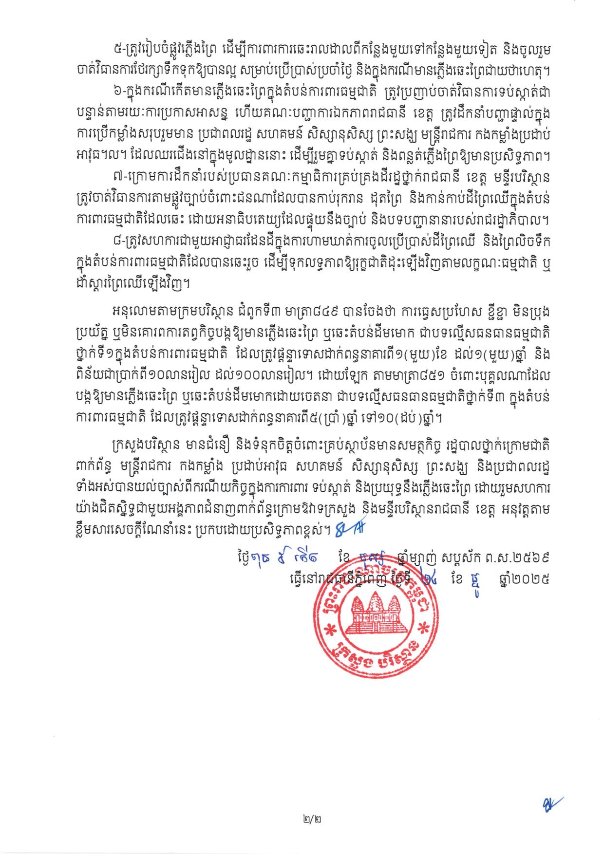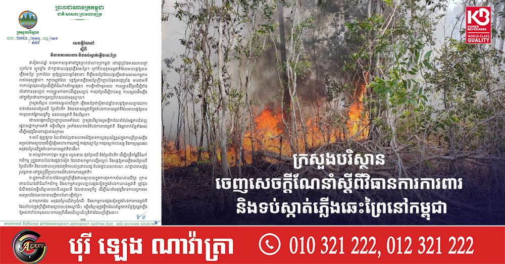ក្រសួងបរិស្ថាន ចេញសេចក្តីណែនាំស្តីពីវិធានការការពារ និងទប់ស្កាត់ភ្លើងឆេះព្រៃនៅកម្ពុជា