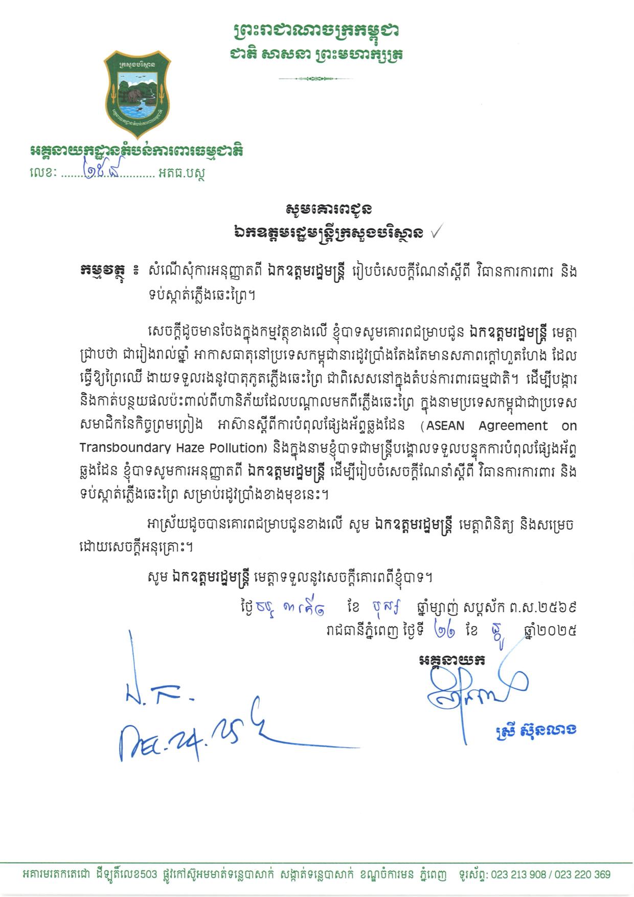 សូមអានសេចក្តីណែនាំរបស់ក្រសួងបរិស្ថានដូចខាងក្រោម៖