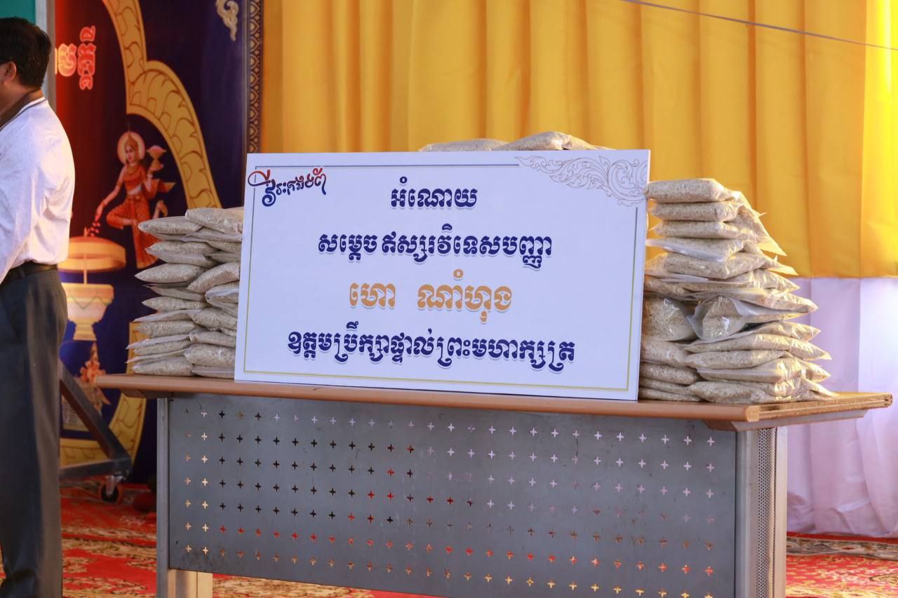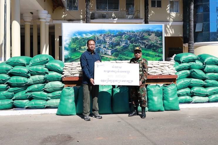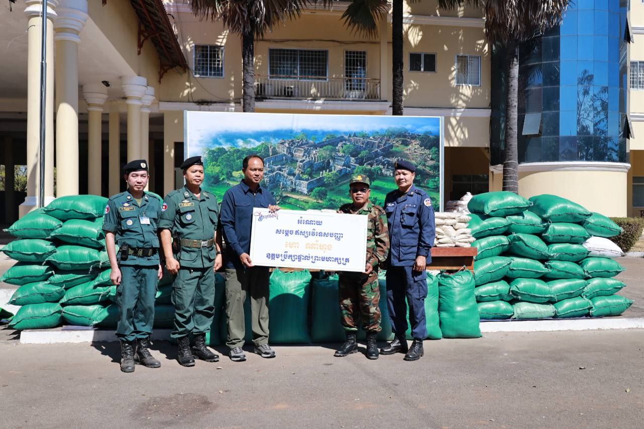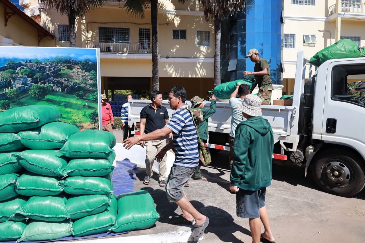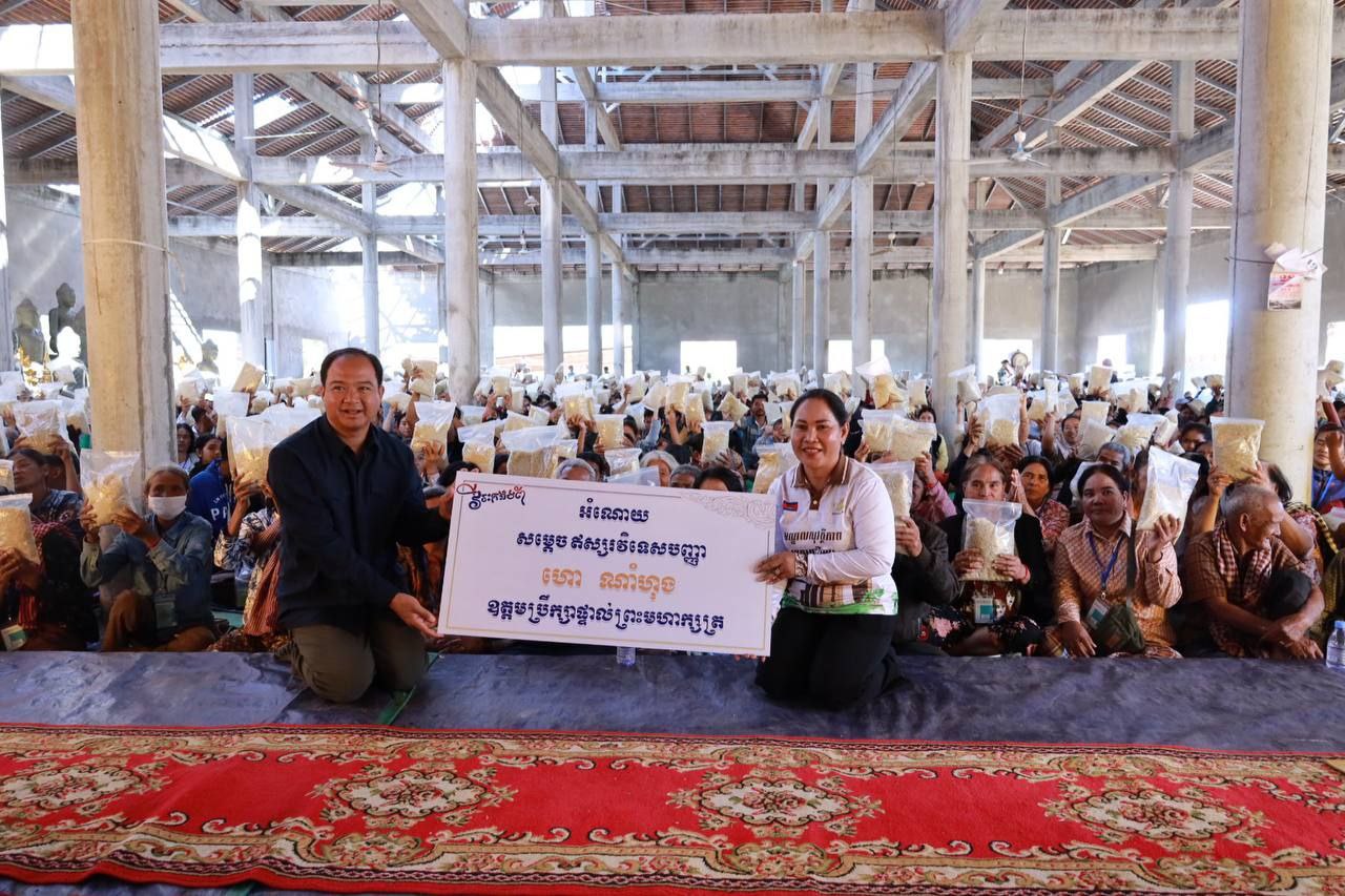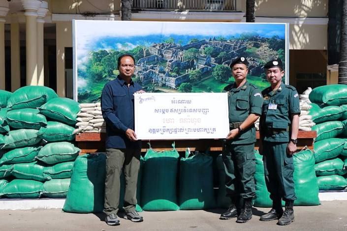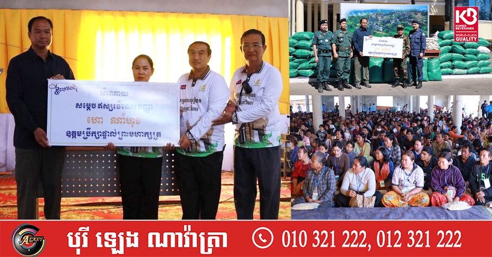 (ព្រះវិហារ)៖ សម្តេច ឥស្សរវិទេសបញ្ញា ហោ ណាំហុង ឧត្តមប្រឹក្សាផ្ទាល់ព្រះមហាក្សត្រ បានឧបត្ថម្ភអំបុកស្រូវថ្មី ចំនួន ២តោន ដល់វីរកងទ័ពកម្ពុជា និង ១តោនទៀត ដល់ជនភៀសសឹកចំនួន ១០០០គ្រួសារ សរុប ៣តោន នៅខេត្តព្រះវិហារ។