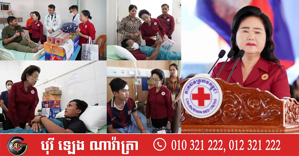 (ភ្នំពេញ)៖ ក្រោមការយកចិត្ដទុកដាក់ដោយមិនរំលង ប្រកបដោយបេះដូងកក់ក្ដៅរបស់មាតាមនុស្សធម៌ សម្ដេចកិត្ដិព្រឹទ្ធបណ្ឌិត ប៊ុន រ៉ានី ហ៊ុនសែន ប្រធានកាកបាទក្រហមកម្ពុជា នៅថ្ងៃទី២៨ ខែធ្នូ ឆ្នាំ២០២៥នេះ បានបន្ដចាត់មន្ដ្រីក្រុមការងារជាបីក្រុម ចុះសួរសុខទុក្ខ និងនាំយកនូវអំណោយជូនដល់វីរយុទ្ធជនយើងដែលរងរបួសកំពុងសម្រាកព្យាបាលនៅមន្ទីរពេទ្យទាំង៥ នៅរាជធានីភ្នំពេញ រួមមានមន្ទីរពេទ្យមិត្ដភាពខ្មែរ-សូវៀត មន្ទីរពេទ្យមិត្ដភាពកម្ពុជា-ចិន ព្រះកុសុមៈ ដឹកនាំដោយលោកជំទាវបណ្ឌិត អ៊ុក ម៉ាលី អគ្គហេរញ្ញិកកាកបាទក្រហមកម្ពុជា, មន្ទីរពេទ្យកាល់ម៉ែត និងមន្ទីរពេទ្យព្រះអង្គឌួង ដឹកនាំដោយលោកជំទាវ ពុំ ចន្ទីនី អគ្គលេខាធិការ និងមន្ទីរពេទ្យព្រះកេតុមាលា ដឹកនាំដោយឯកឧត្ដម សំ វណ្ណារ៉ា នាយករងខុទ្ទកាល័យ សម្តេចកិត្តិព្រឹទ្ធបណ្ឌិត។