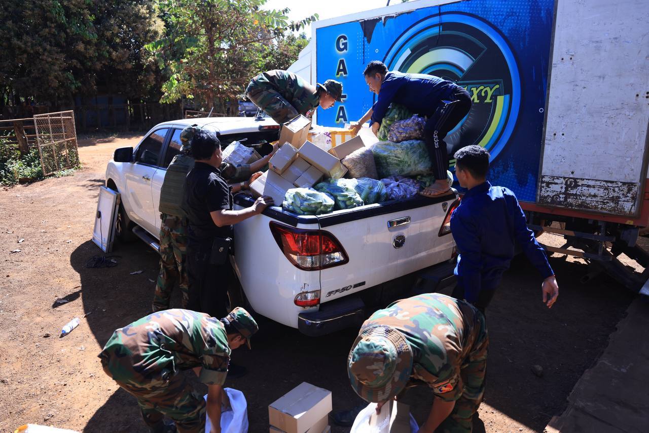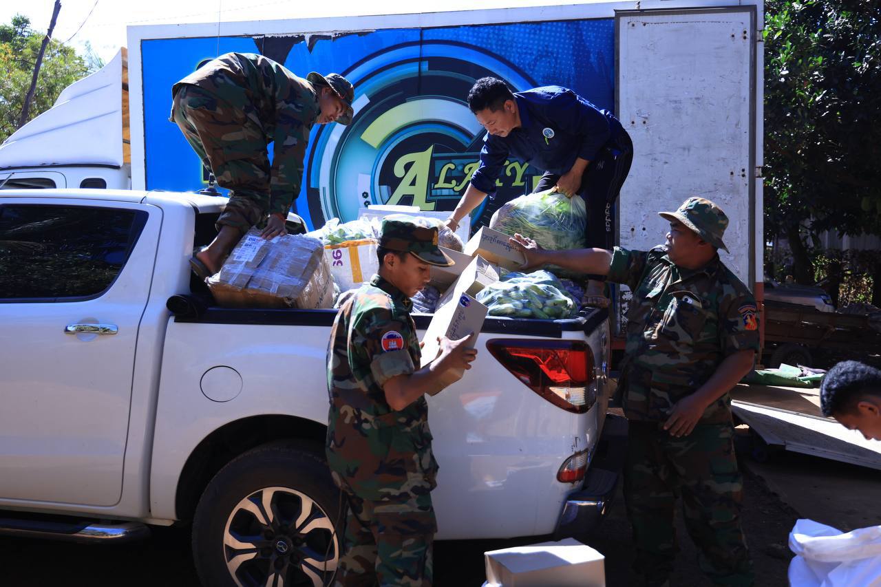 ក្នុងស្មារតីគាំទ្រសមរភូមិមុខ! ក្រុមយុវជនបូជាការពារយុត្តិធម៌ ទទួលការណែនាំពីអ្នកឧកញ៉ា ឡេង ណាវ៉ាត្រា បាននាំយកស្បៀងជូនកងទ័ព និងប្រជាជនភៀសខ្លួន