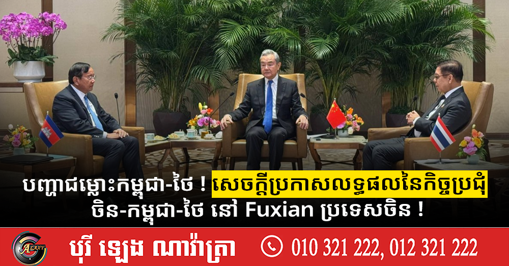 បញ្ហាជម្លោះកម្ពុជា-ថៃ ! សេចក្តីប្រកាសលទ្ធផលនៃកិច្ចប្រជុំ ចិន-កម្ពុជា-ថៃ នៅ Fuxian ប្រទេសចិន ! (Video inside)