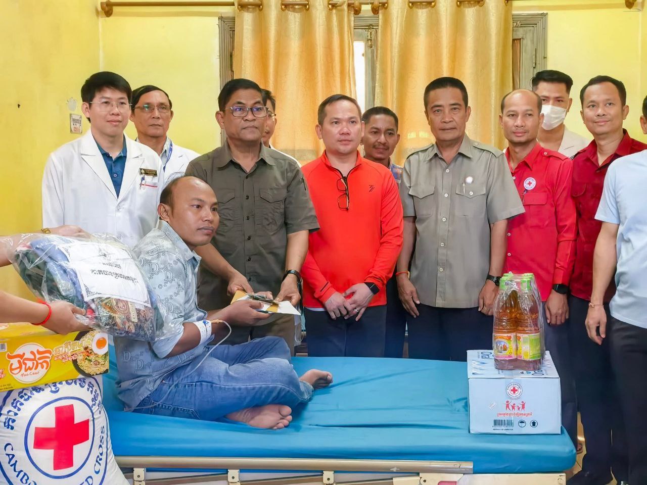 (រតនគិរី)៖ លោក ញ៉ែម សំអឿន អភិបាលខេត្តរតនគិរី និងជាប្រធានគណ:កម្មាធិការសាខាកាកបាទក្រហមកម្ពុជាខេត្ត នៅព្រឹកថ្ងៃទី២៩ ខែធ្នូ ឆ្នាំ២០២៥នេះ បានដឹកនាំ សមាជិក សមាជិកា គណ:កម្មាធិការសាខាចុះសួរសុខទុក្ខវីរយុទ្ធជនការពារបូរណភាពទឹកដីដ៏អង់អាចក្លាហាន ដែលបានពុលផ្សែង និងរងបួសក្នុងសមរភូមិមុខតំបន់អានសេះ តំបន់ ព្រះវិហារ ៣រូប គ្រួសារវីរយុទ្ធជន ១រូប និងបន្តសួរសុខទុក្ខស្ត្រីសម្រាលកូនភ្លោះ ២នាក់ កំពុងសម្រាកព្យាបាលនៅមន្ទីរពេទ្យខេត្តរតនគិរី ដើម្បីលើកទឹកចិត្ត ផ្តល់ភាពកក់ក្តៅ និងផ្តល់ក្តីសង្ឃឹម។