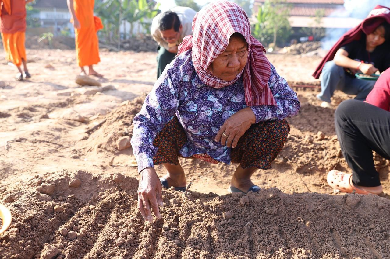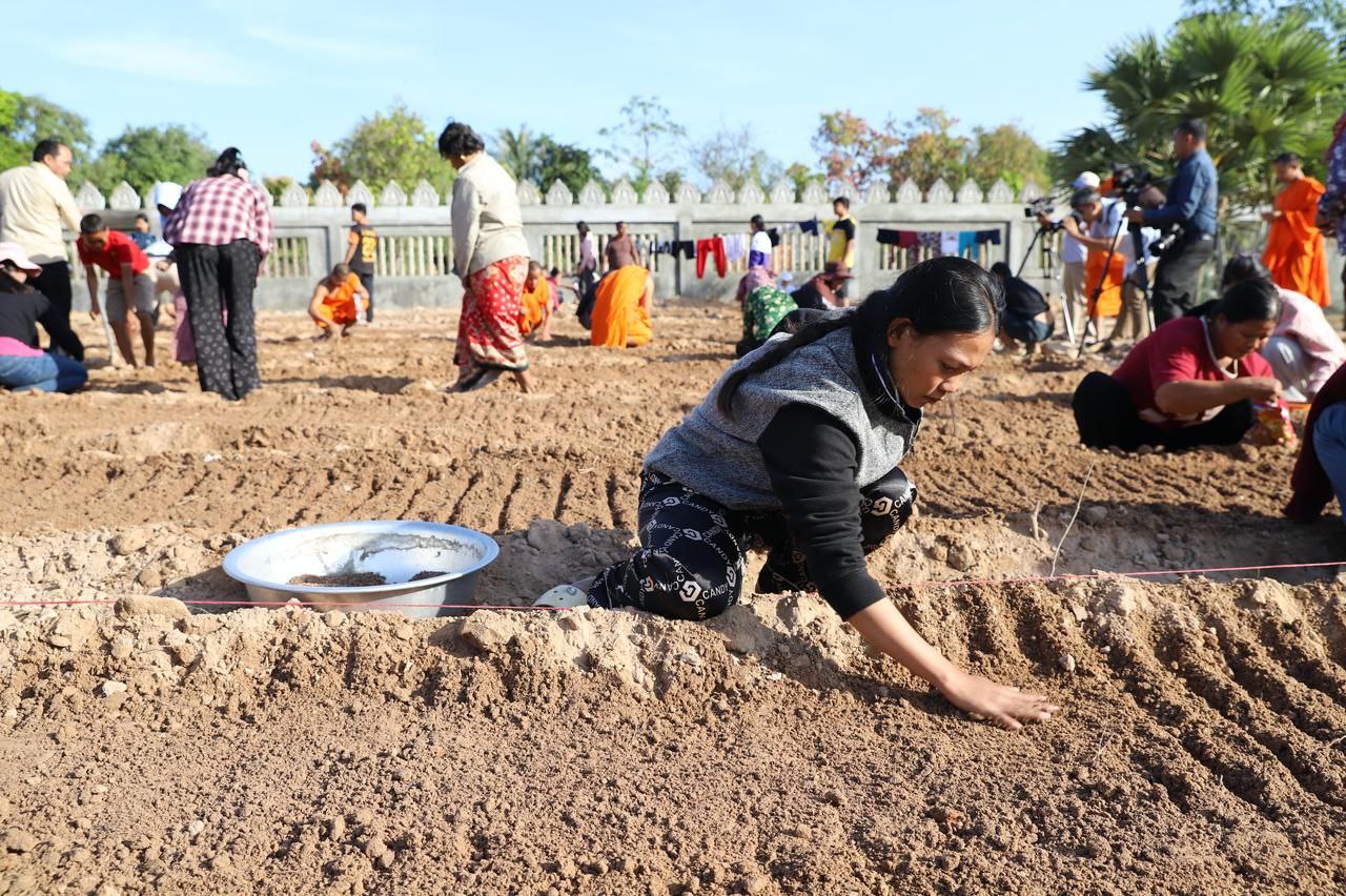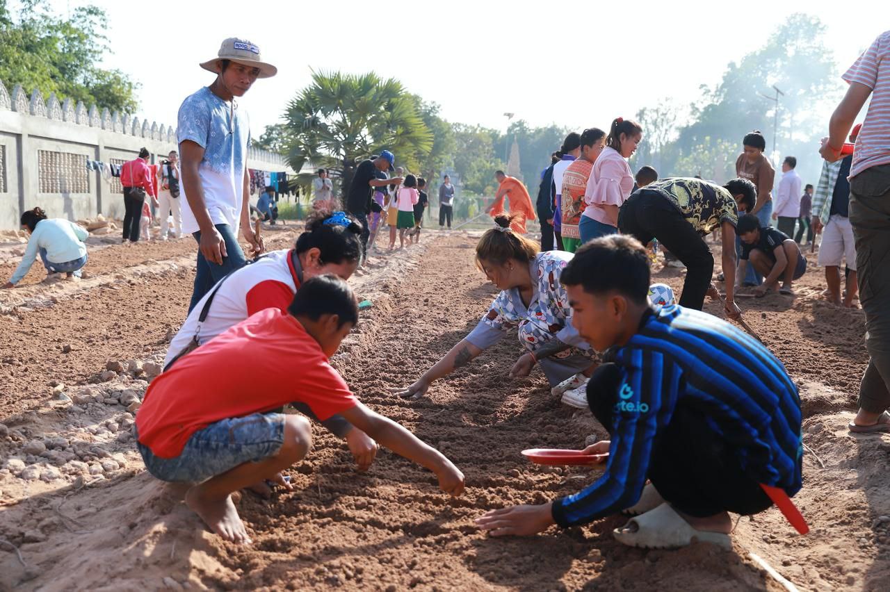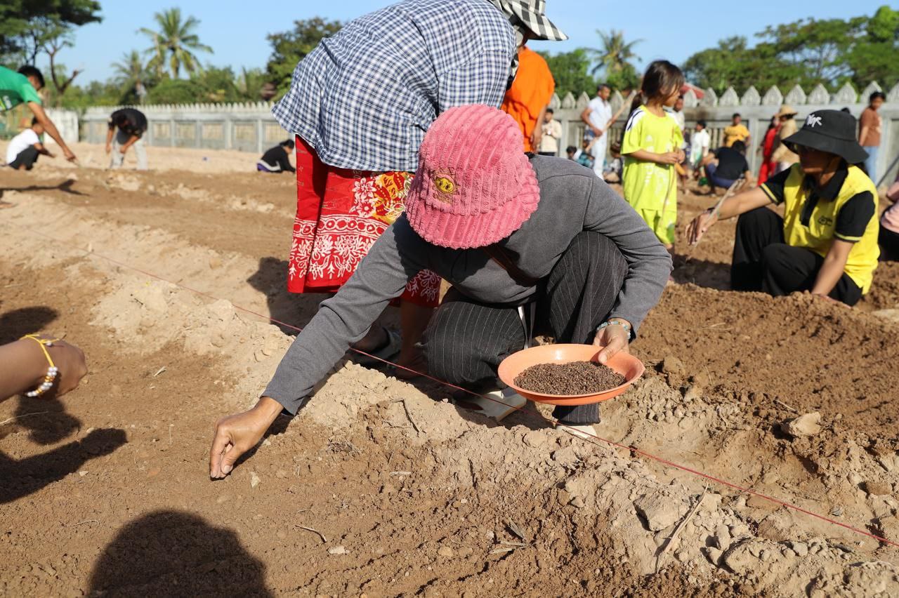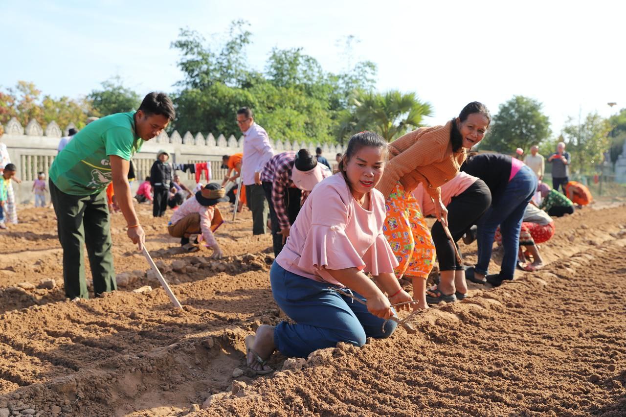 (សៀមរាប)៖ ព្រះគ្រូវិចិត្រវង្សា ហែម គឹមសាន ចៅអធិការវត្តប្រាសាទគោកចក ក្នុងក្រុងសៀមរាប និងអាជ្ញាធរមូលដ្ឋាន ព្រមទាំងមន្ត្រីជំនាញ នៅថ្ងៃទី២៩ ខែធ្នូ ឆ្នាំ២០២៥ បានដឹកនាំបងប្អូនជនភៀសសឹកដែលកំពុងតែស្នាក់នៅក្នុងវត្ត ជួយគ្នាដាំដំណាំបន្លែដើម្បីជាស្បៀងអាហារ និងផ្គត់ផ្គង់ដល់ការហូបចុក និងសម្រួលជីវភាពប្រចាំថ្ងៃ ក្នុងពេលដែលពួកគាត់រស់នៅបណ្ដោះអាសន្នក្នុងវត្ត។
