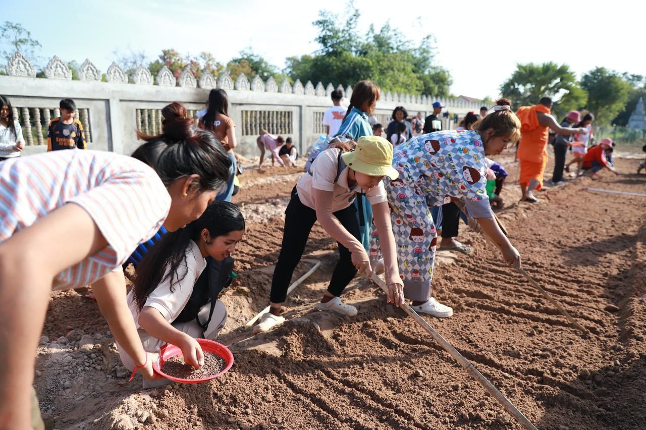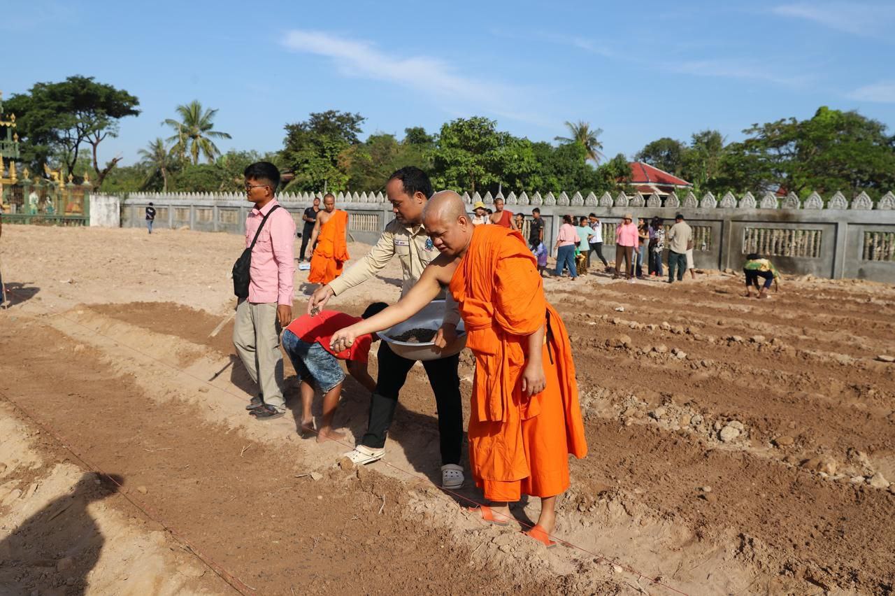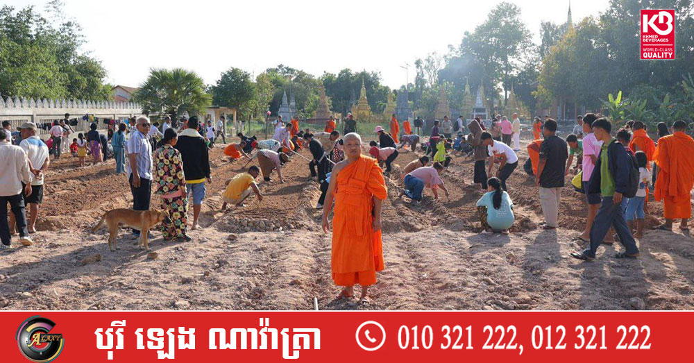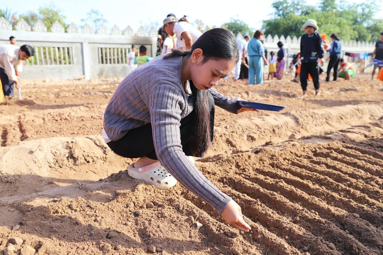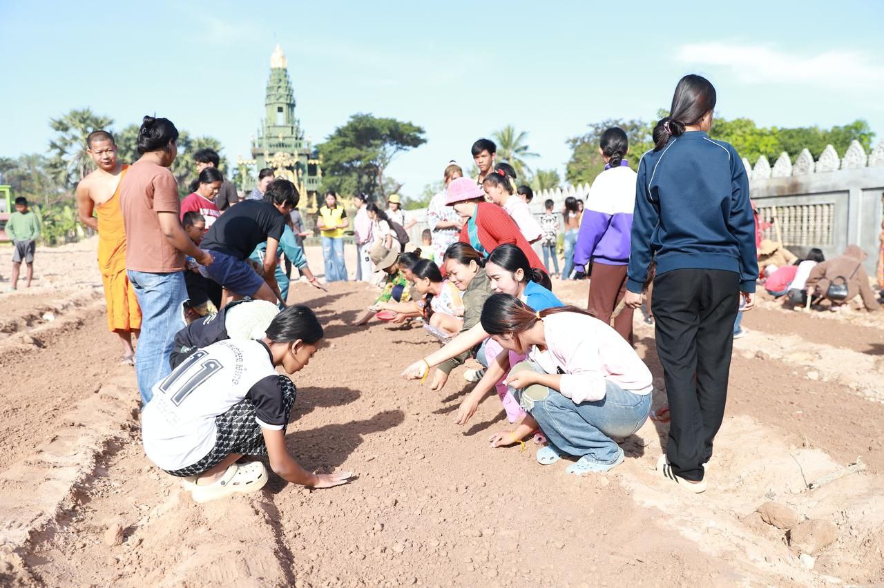 (សៀមរាប)៖ ព្រះគ្រូវិចិត្រវង្សា ហែម គឹមសាន ចៅអធិការវត្តប្រាសាទគោកចក ក្នុងក្រុងសៀមរាប និងអាជ្ញាធរមូលដ្ឋាន ព្រមទាំងមន្ត្រីជំនាញ នៅថ្ងៃទី២៩ ខែធ្នូ ឆ្នាំ២០២៥ បានដឹកនាំបងប្អូនជនភៀសសឹកដែលកំពុងតែស្នាក់នៅក្នុងវត្ត ជួយគ្នាដាំដំណាំបន្លែដើម្បីជាស្បៀងអាហារ និងផ្គត់ផ្គង់ដល់ការហូបចុក និងសម្រួលជីវភាពប្រចាំថ្ងៃ ក្នុងពេលដែលពួកគាត់រស់នៅបណ្ដោះអាសន្នក្នុងវត្ត។