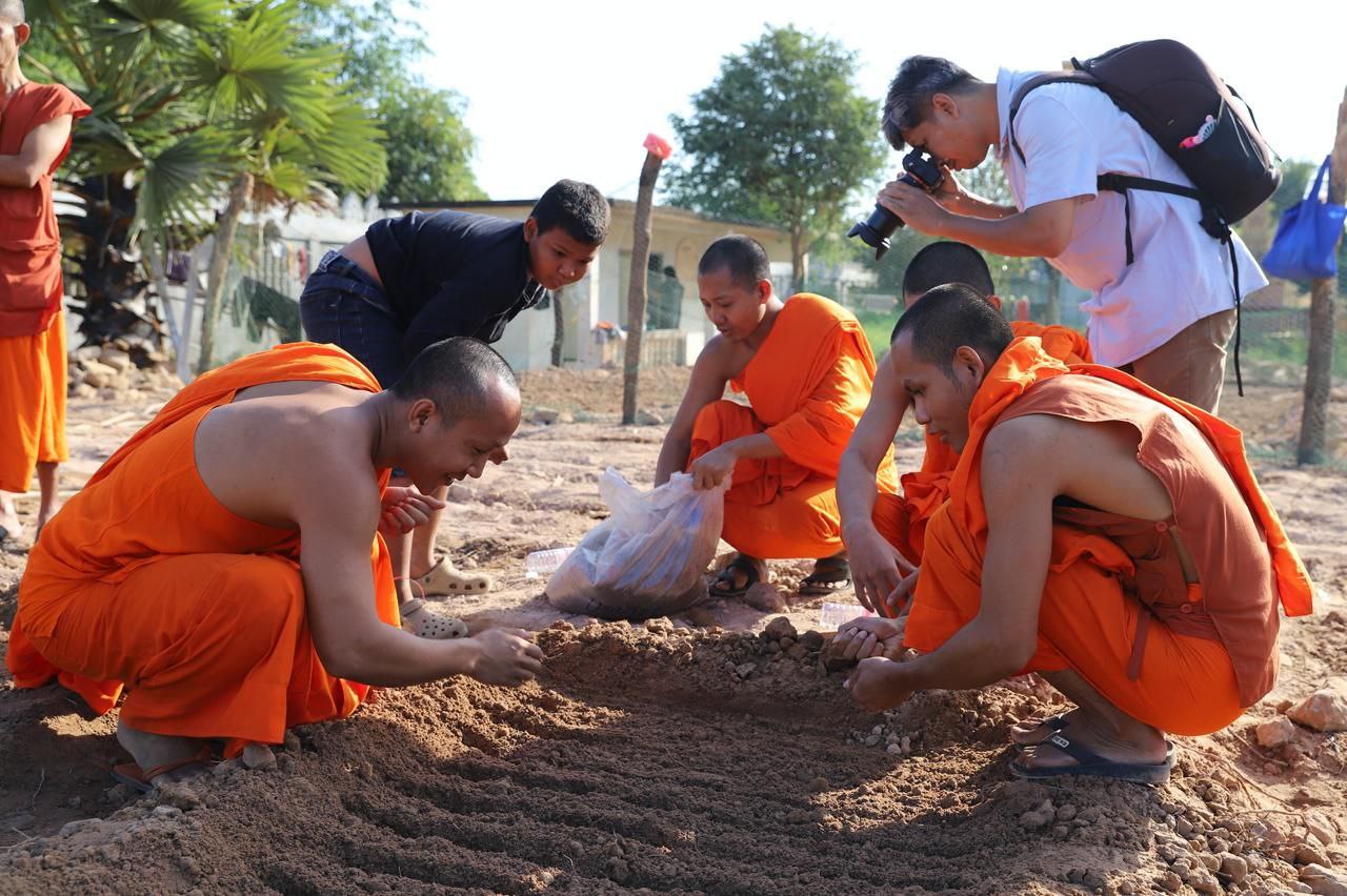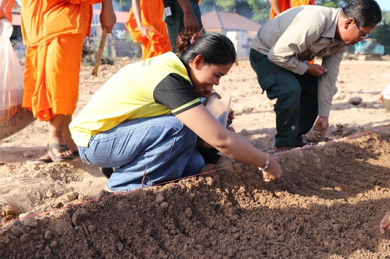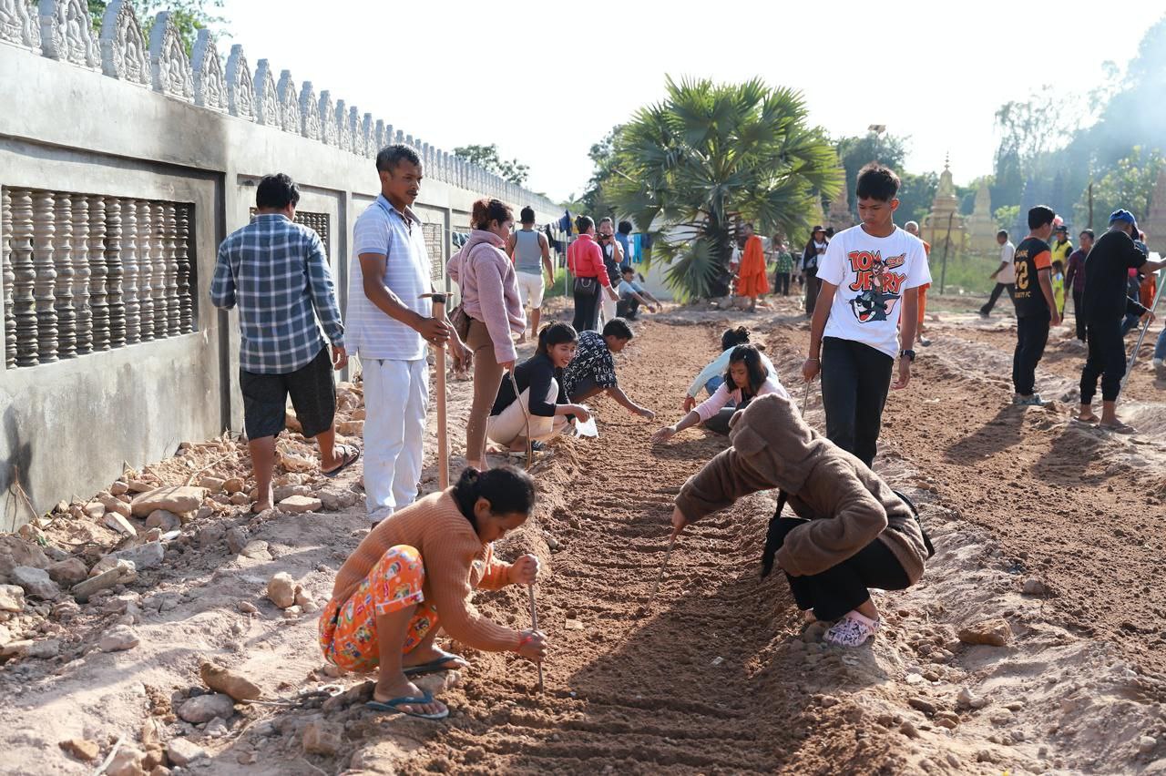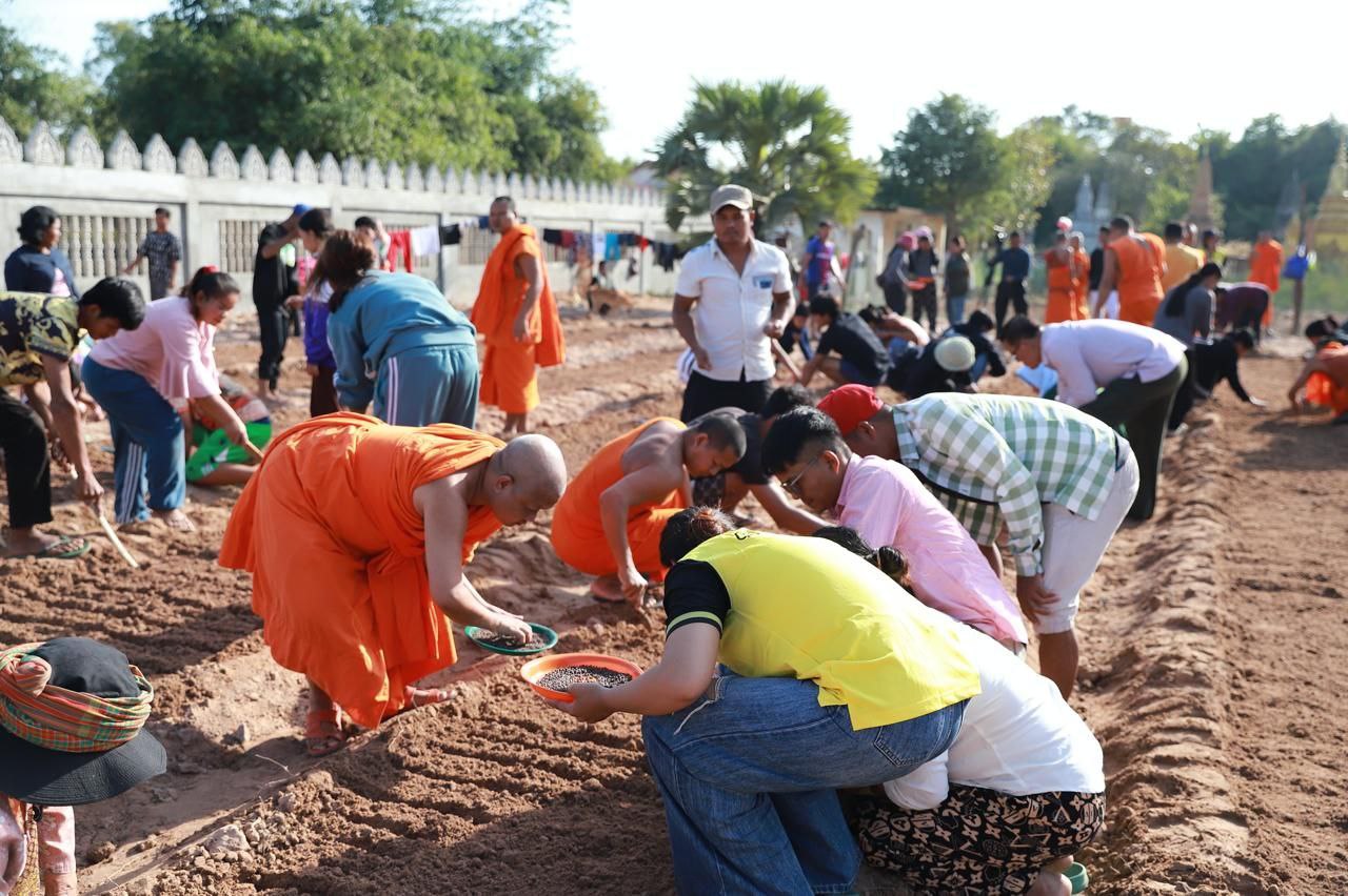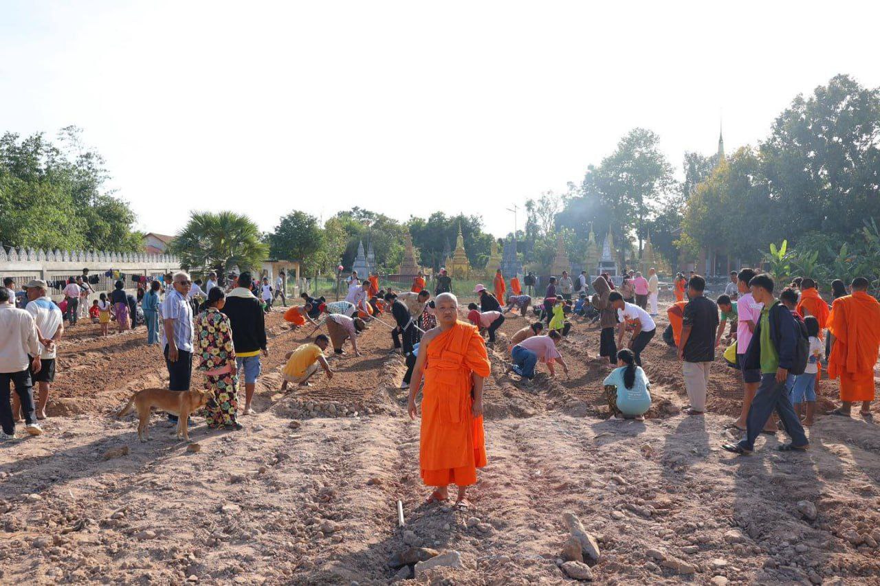 (សៀមរាប)៖ ព្រះគ្រូវិចិត្រវង្សា ហែម គឹមសាន ចៅអធិការវត្តប្រាសាទគោកចក ក្នុងក្រុងសៀមរាប និងអាជ្ញាធរមូលដ្ឋាន ព្រមទាំងមន្ត្រីជំនាញ នៅថ្ងៃទី២៩ ខែធ្នូ ឆ្នាំ២០២៥ បានដឹកនាំបងប្អូនជនភៀសសឹកដែលកំពុងតែស្នាក់នៅក្នុងវត្ត ជួយគ្នាដាំដំណាំបន្លែដើម្បីជាស្បៀងអាហារ និងផ្គត់ផ្គង់ដល់ការហូបចុក និងសម្រួលជីវភាពប្រចាំថ្ងៃ ក្នុងពេលដែលពួកគាត់រស់នៅបណ្ដោះអាសន្នក្នុងវត្ត។