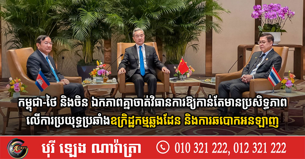 កម្ពុជា-ថៃ និងចិន ឯកភាពគ្នាចាត់វិធានការឱ្យកាន់តែមានប្រសិទ្ធភាពលើការប្រយុទ្ធប្រឆាំងឧក្រិដ្ឋកម្មឆ្លងដែន និងការឆបោកអនឡាញ (Video inside)