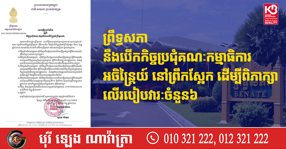 ព្រឹទ្ធសភា នឹងបើកកិច្ចប្រជុំគណៈកម្មាធិការអចិន្ត្រៃយ៍ នៅព្រឹកស្អែក ដើម្បីពិភាក្សាលើរបៀបវារៈចំនួន៦