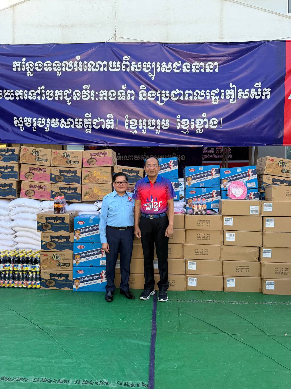 អំណោយទាំងនេះ ត្រូវបានទទួលដោយផ្ទាល់ពីសំណាក់លោកបណ្ឌិត ជ្រុន ថេរ៉ាវ៉ាត អនុប្រធានយុវជនគណបក្សថ្នាក់កណ្តាល និងជាប្រធានគណៈប្រចាំការ នៃគណៈអចិន្ត្រៃយ៍យុវជនគណបក្សថ្នាក់កណ្តាល និង លោក គីម សុភៈ សមាជិកគណៈកម្មាធិការកណ្តាល និងជាសមាជិកគណៈអចិន្រ្តៃយ៍ នៃយុវជនគណបក្សប្រជាជនកម្ពុជាថ្នាក់កណ្តាល ដើម្បីត្រៀមរៀបចំបែងចែកជូនបងប្អូនកងទ័ពជួរមុខកម្ពុជា និងបងប្អូនប្រជាពលរដ្ឋជនភៀសសឹក ទៅតាមមណ្ឌលសុវត្ថិភាពនានា។