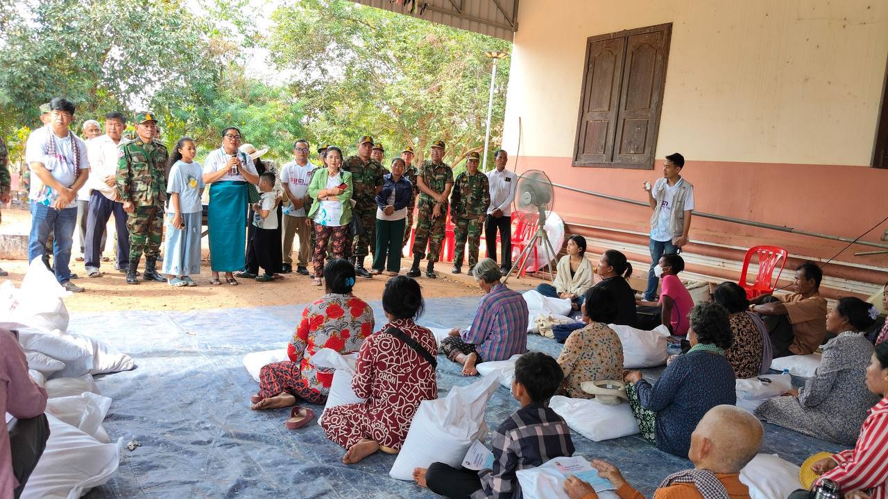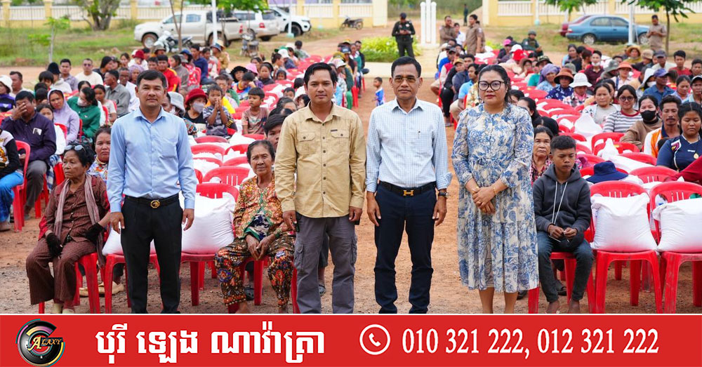 (ពោធិ៍សាត់)៖ លោកស្រី ស៊ន់ ធារ៉ុន (ដន ម៉ាលីន) តំណាងក្រុមហ៊ុន CAMBODIAN AQ LA SHAN NONGMU AGRICULTURAL AND ANIMAL HUSBANDRY RESOUCES CO.,LTD ជាក្រុមហ៊ុនកសិកម្មដាំដុះដំណាំដំឡូងមី និងរោងចក្រផលិតម្សៅដំឡូងមីស្ងួត ដែលមានមូលដ្ឋានក្នុងភូមិកណ្តាល ឃុំឈើតុំ ស្រុកក្រគរ ខេត្តពោធិ៍សាត់ បានផ្តល់ជំនួយជាបន្តបន្ទាប់ ជូនដល់បងប្អូនគ្រួសារកងទ័ព និងពលរដ្ឋភៀសសឹក ដែលរងគ្រោះដោយសារសង្គ្រាមឈ្លានពាន មកស្នាក់នៅបណ្តោះអាសន្ន ក្នុងខេត្តពោធិ៍សាត់ ខេត្តសៀមរាប និងខេត្តបាត់ដំបង នូវអង្ករសរុបចំនួន២០០តោន, ត្រីងៀត២តោន និងថវិកាមួយចំនួន។