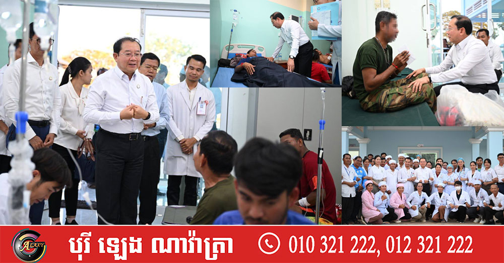 (ព្រះវិហារ)៖ លោកសាស្ត្រាចារ្យ ឈាង រ៉ា រដ្ឋមន្រ្តីសុខាភិបាល និងថ្នាក់ដឹកនាំក្រសួងសុខាភិបាល បន្តចុះសួរសុខទុក្ខវីរកងទ័ព វីរនគរបាល ដែលកំពុងទទួលបានការថែទាំ ព្យាបាលក្នុងមណ្ឌលសុខភាព គូលែន នៅរសៀលថ្ងៃទី២៩ ខែធ្នូ ឆ្នាំ២០២៥។