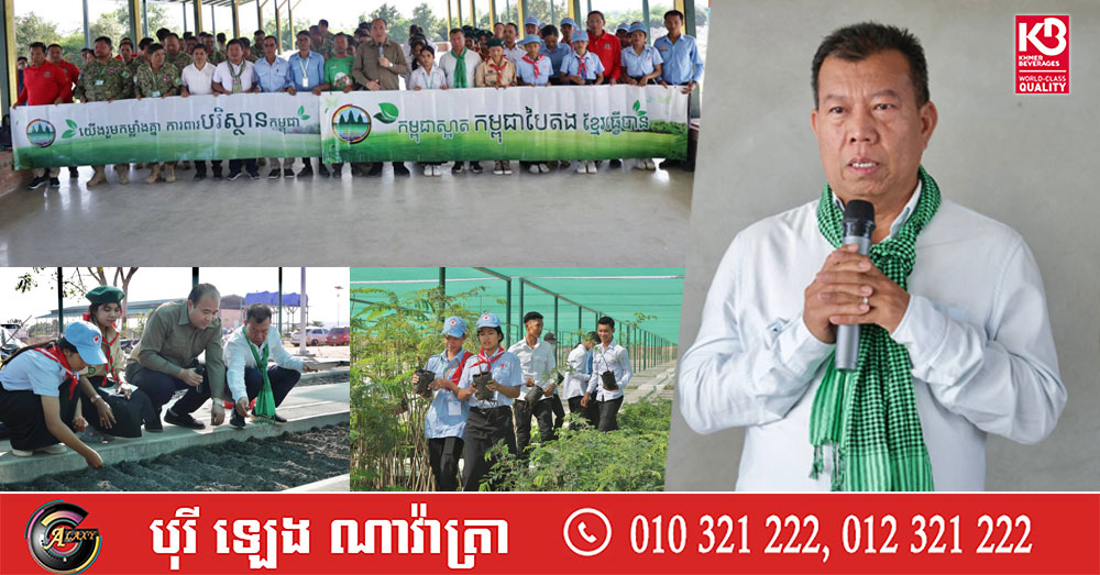 សូមបញ្ជាក់ថា ស្របតាមអនុសាសន៍ដឹកនាំដ៏ខ្ពង់ខ្ពស់ របស់លោកជំទាវបណ្ឌិត ពេជ ចន្ទមុន្នី ហ៊ុនម៉ាណែត អគ្គស្នងការសមាគមកាយឫទ្ធិនារីកម្ពុជា លើចលនា «យើងរួមគ្នាដើម្បីជាតិ!» ក្រសួងបរិស្ថានបានជំរុញសកម្មភាព «ពន្លកបៃតង» ជាមួយសិស្សានុសិស្ស លោកគ្រូអ្នកគ្រូ អាជ្ញាធរ និងប្រជាពលរដ្ឋនៅតាមសហគមន៍មូលដ្ឋាន នាំគ្នាបណ្តុះកូនឈើព្រៃ ឈើហូបផ្លែ និងដាំបន្លែនៅតាមថ្នាលបណ្តុះកូនឈើ ដើម្បីចែកជូនប្រជាពលរដ្ឋដាំ ជួយបង្កើនគម្របបៃតងនៅកម្ពុជា ប្រមូលផលសម្រាប់បង្កើនជីវភាពគ្រួសារ និងមួយចំនួនទុកជូនវីរកងទ័ព ដែលកំពុងឈរជើងការពារទឹកដីពីសត្រូវឈ្លានពាន និងប្រជាពលរដ្ឋកំពុងភៀសសឹក ដោយសារការឈ្លានពានបូរណភាពទឹកដីកម្ពុជា នៅតាមបន្ទាត់ព្រំដែនកម្ពុជា-ថៃ។