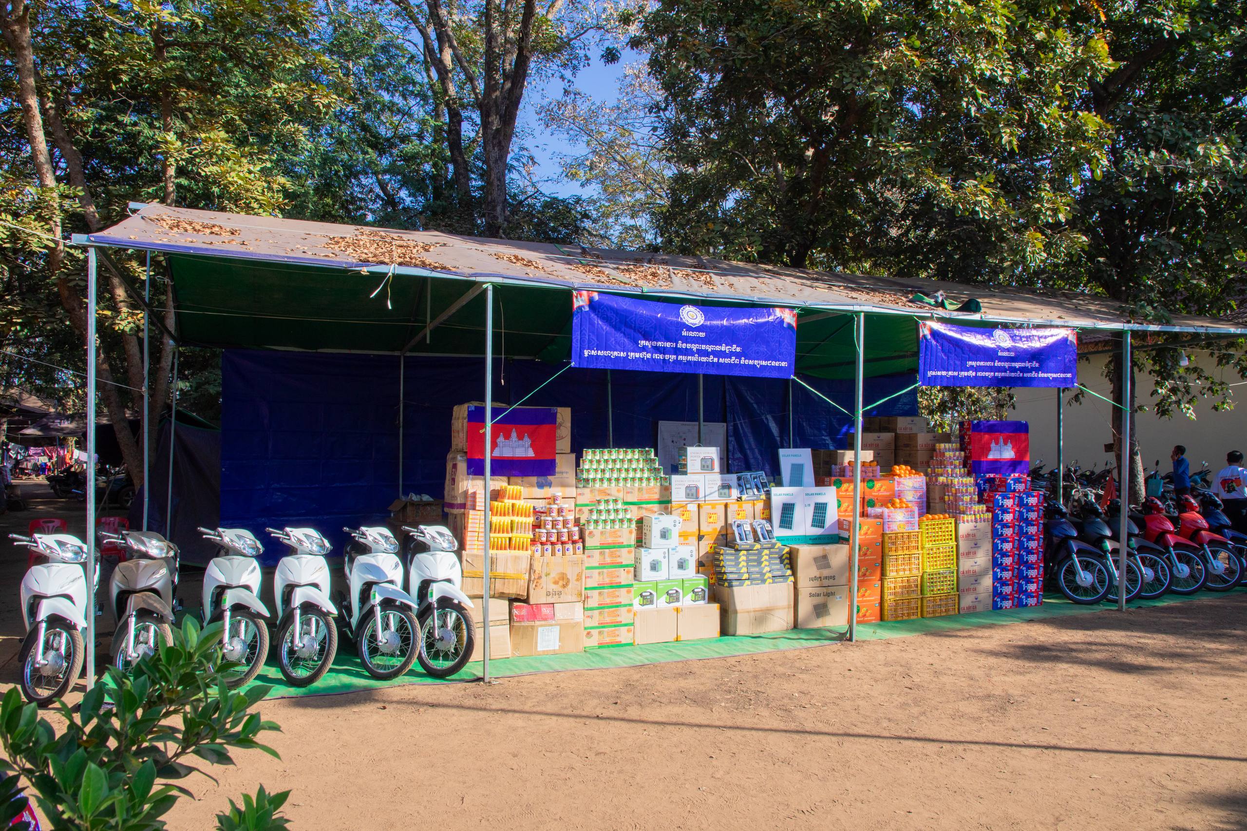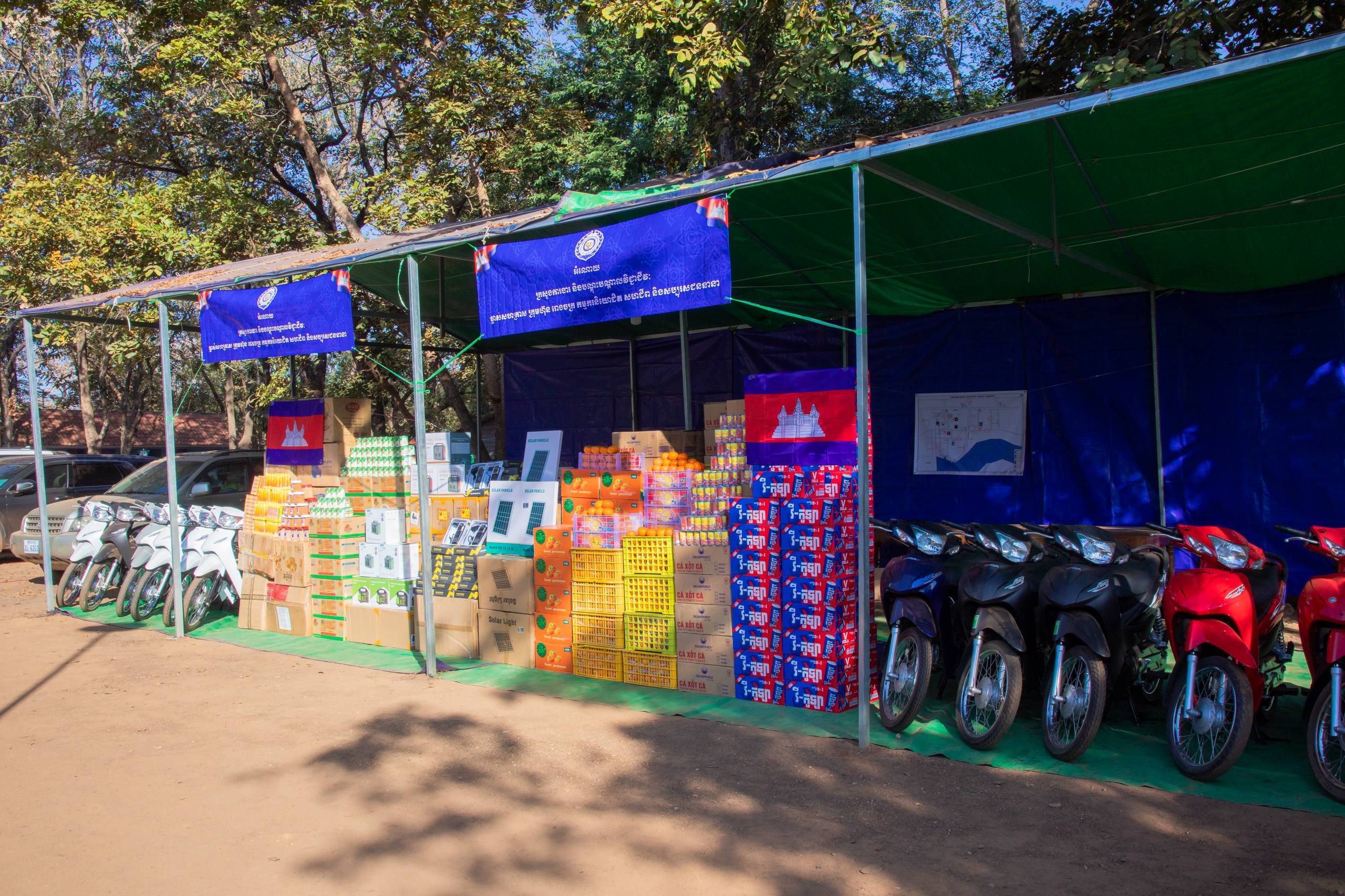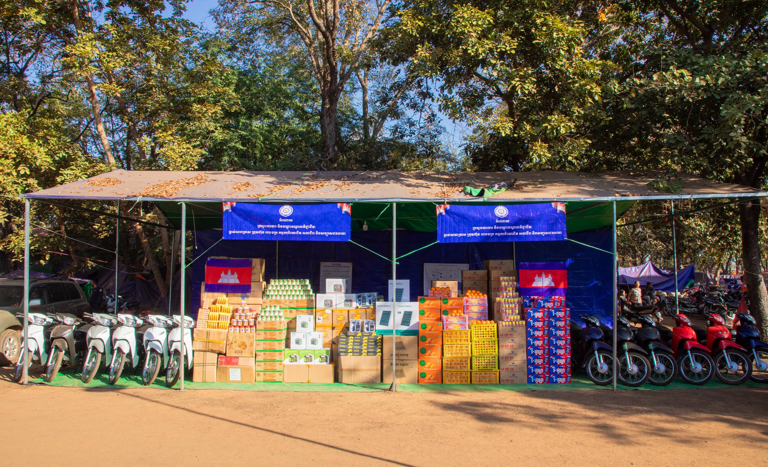 សូមជម្រាបដែរថា អំណោយនាពេលនេះ រួមមាន៖ ថវិកាចំនួន៤០ លានរៀល ជូនរដ្ឋបាលខេត្ត និង ចំនួន៩០ លានរៀលបន្ថែមទៀត សម្រាប់ជូនដល់ ៦ អង្គភាព (អង្គភាពនីមួយៗទទួលបាន ១៥ លានរៀល), ម៉ូតូ(Wave)ចំនួន ១២ គ្រឿង, ផ្ទាំងសូឡា, អាយកូម, គ្រឿងឧបភោគបរិភោគ, ភេសជ្ជៈ, ថ្នាំសង្កូវ និងទឹកដោះគោឆៅ។