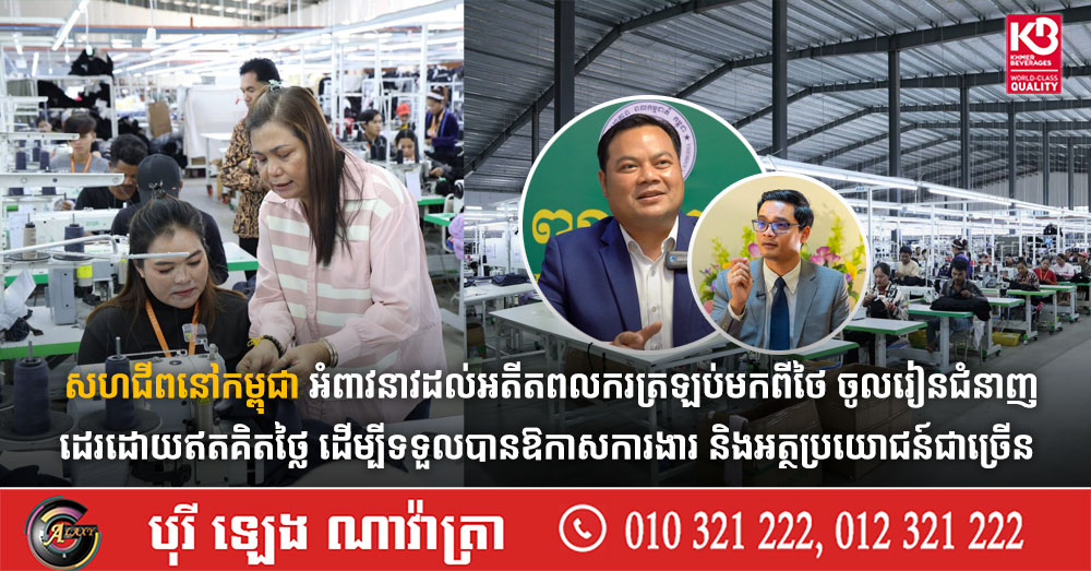 សហជីពនៅកម្ពុជា អំពាវនាវដល់អតីតពលករត្រឡប់មកពីថៃ ចូលរៀនជំនាញដេរដោយឥតគិតថ្លៃ ដើម្បីទទួលបានឱកាសការងារ និងអត្ថប្រយោជន៍ជាច្រើន