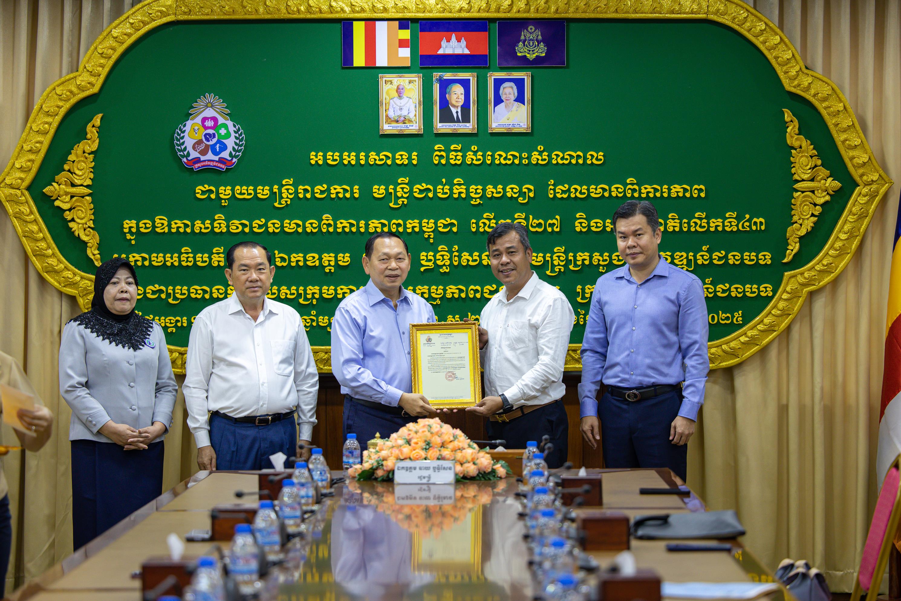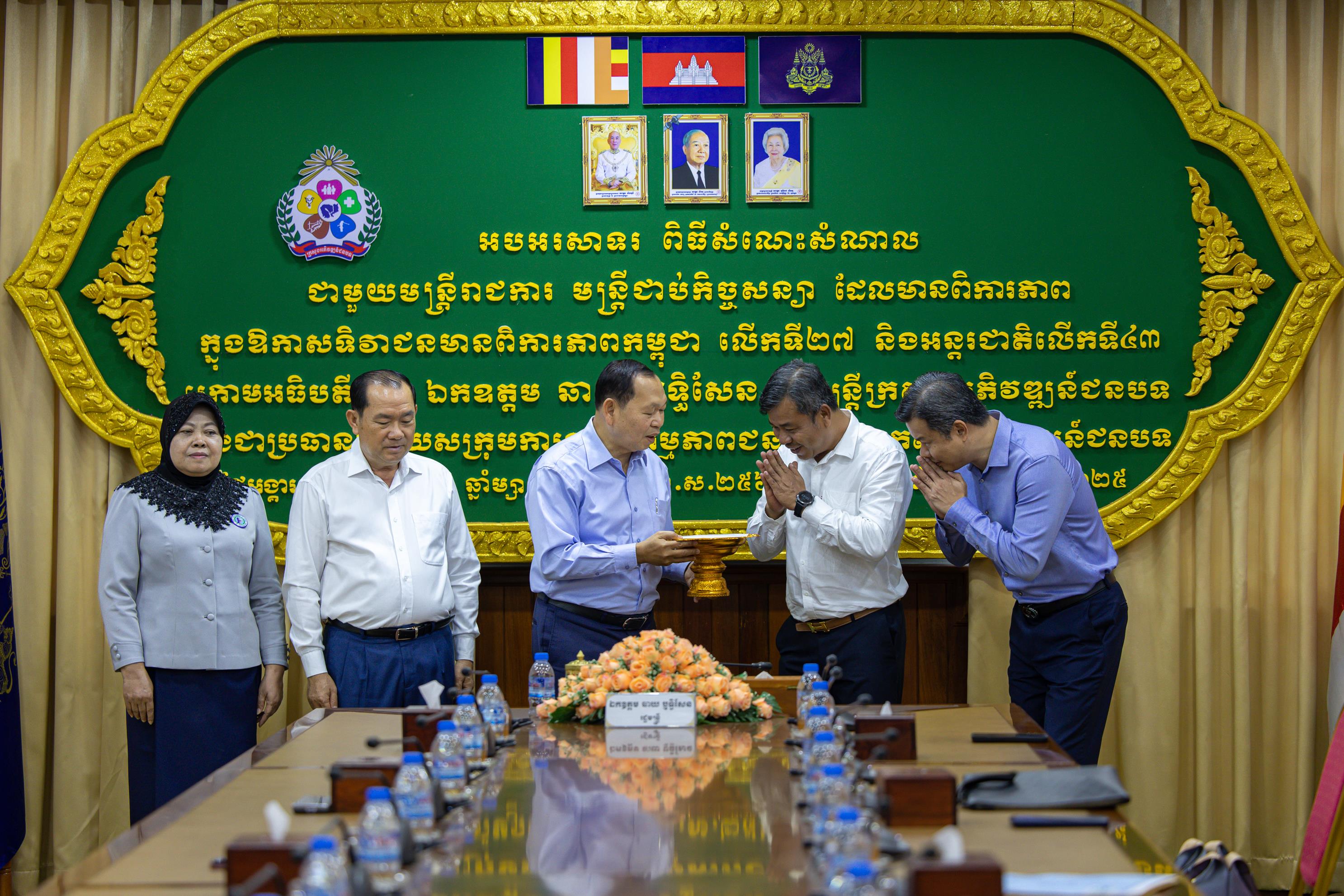 (ភ្នំពេញ)៖ លោក ឆាយ ឫទ្ធិសែន រដ្ឋមន្ដ្រីក្រសួងអភិវឌ្ឍន៍ជនបទ និងជាសមាជិកគណៈអចិន្ដ្រៃយ៍គណៈកម្មាធិការកណ្ដាលសហភាពសហព័ន្ធយុវជនកម្ពុជា នាថ្ងៃទី៣០ ខែធ្នូ ឆ្នាំ២០២៥នេះ បានអញ្ជើញទទួលអំណោយរបស់ លោកអគ្គនាយក ក្រុមហ៊ុន C.NO Construction & Investment Co.,Ltd ដែលបានឧបត្ថម្ភថវិកា ចំនួន ៥ ០០០ ដុល្លាសហរដ្ឋអាមេរិក មកចូលរួមក្នុងមូលនិធិសប្បុរសធម៌ ដែលរៀបចំដោយក្រុមការងារសហភាពសហព័ន្ធយុវជនកម្ពុជា ក្នុងវិស័យអភិវឌ្ឍន៍ជនបទ សម្រាប់យកទៅឧបត្ថម្ភគាំទ្រដល់គ្រួសារវីរកងទ័ព និងប្រជាជនភៀសសឹកកម្ពុជា ដែលបានជម្លៀសខ្លួនពីលំនៅដ្ឋាន ហើយកំពុងស្នាក់នៅបណ្ដោះអាសន្ននៅតាមទីតាំងសុវត្ថិភាពនានា ក្នុងអំឡុងពេលនៃការប៉ះទង្គិចដោយប្រដាប់អាវុធ រវាងយោធាកម្ពុជា និងថៃ នាពេលកន្លងមកនេះ។