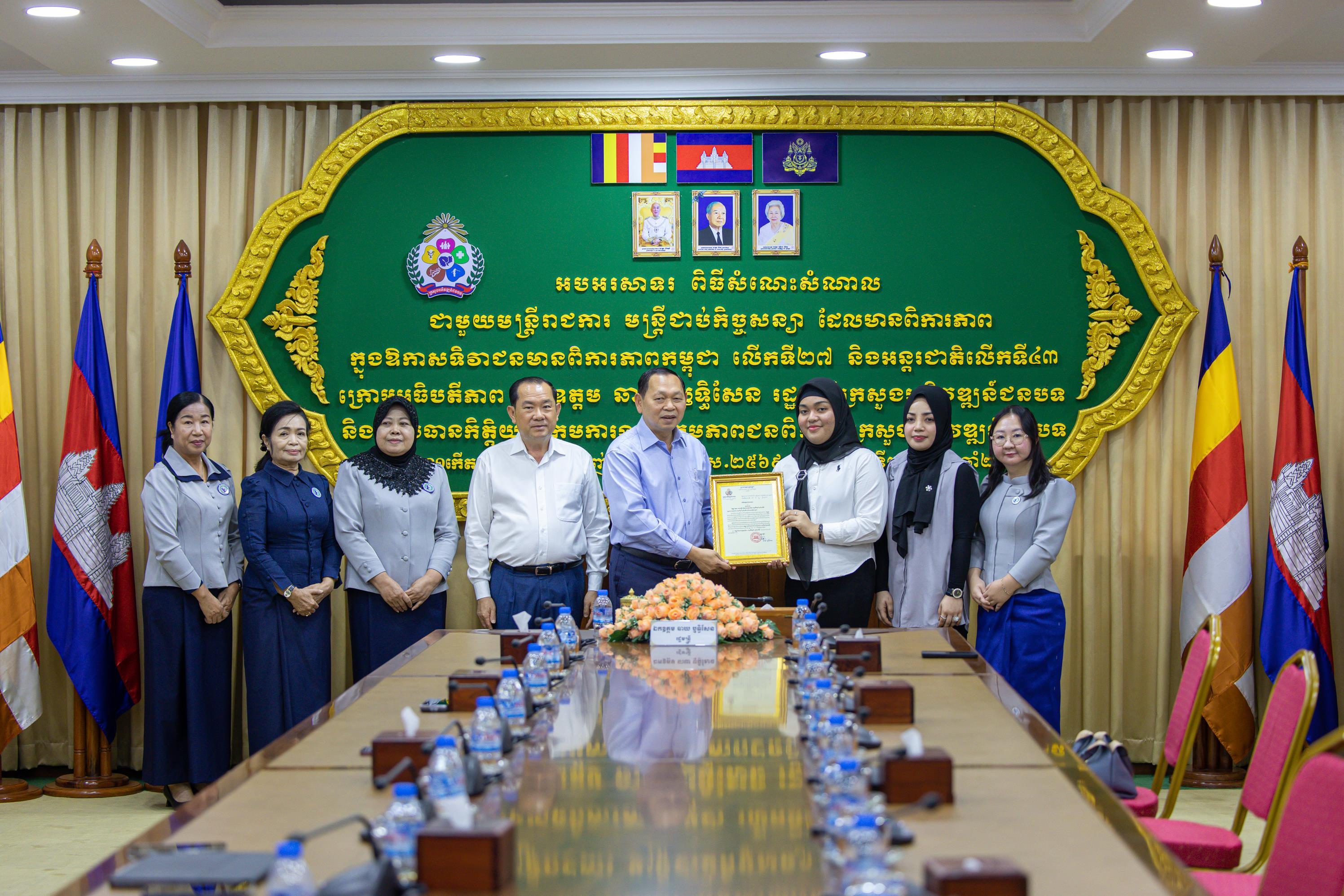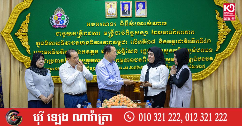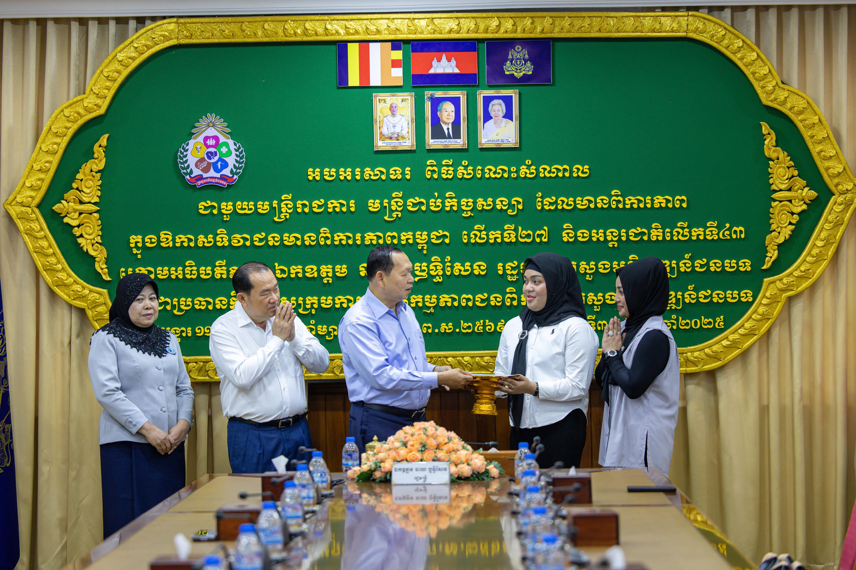 (ភ្នំពេញ)៖ លោក ឆាយ ឫទ្ធិសែន រដ្ឋមន្ដ្រីក្រសួងអភិវឌ្ឍន៍ជនបទ និងជាសមាជិកគណៈអចិន្ដ្រៃយ៍គណៈកម្មាធិការកណ្ដាលសហភាពសហព័ន្ធយុវជនកម្ពុជា នាថ្ងៃទី៣០ ខែធ្នូ ឆ្នាំ២០២៥ បានអញ្ជើញទទួលអំណោយរបស់ លោកស្រី លឹម ស៊ីវទាង និងស្វាមី ដែលបានឧបត្ថម្ភថវិកាចំនួន ៤ លានរៀល តាមរយៈសមាគមនារីកម្ពុជាដើម្បីសន្ដិភាពនិងអភិវឌ្ឍន៍ នៃក្រសួងអភិវឌ្ឍន៍ជនបទ មកចូលរួមក្នុងមូលនិធិសប្បុរសធម៌ ដែលរៀបចំដោយក្រុមការងារសហភាពសហព័ន្ធយុវជនកម្ពុជា ក្នុងវិស័យអភិវឌ្ឍន៍ជនបទ សម្រាប់យកទៅឧបត្ថម្ភគាំទ្រដល់គ្រួសារវីរកងទ័ព និងប្រជាជនភៀសសឹកកម្ពុជា នៅតាមទីតាំងសុវត្ថិភាពនានា ក្នុងអំឡុងពេលនៃការប៉ះទង្គិចដោយប្រដាប់អាវុធ រវាងយោធាកម្ពុជា និងថៃនាពេលកន្លងមកនេះ។ ដោយមានការចូលរួមពី រដ្ឋលេខាធិការប្រចាំការ ថ្នាក់ដឹកនាំក្រសួង រួមជាមួយលោកស្រីប្រធាន និងសមាជិក សមាគមនារីកម្ពុជាដើម្បីសន្តិភាព និងអភិវឌ្ឍន៍នៃក្រសួងអភិវឌ្ឍន៍ជនបទផងដែរ។
