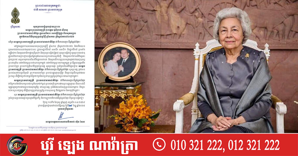 (ភ្នំពេញ)៖ សម្តេចតេជោ ហ៊ុន សែន ប្រធានព្រឹទ្ធសភានៃកម្ពុជា និងក្នុងនាម សមាជិក សមាជិកាព្រឹទ្ធសភា ព្រមទាំងថ្នាក់ដឹកនាំ មន្ត្រីរាជការ នៃអគ្គលេខាធិការដ្ឋានព្រឹទ្ធសភា បានថ្វាយសារលិខិត សូមក្រាបបង្គំទូលថ្វាយព្រះពរ សម្តេចព្រះមហាក្សត្រី នរោត្តម មុនិនាថ សីហនុ ព្រះវររាជមាតាជាតិខ្មែរ ក្នុងសេរីភាព សេចក្តីថ្លៃថ្នូរ និងសុភមង្គល ក្នុងឱកាសពិធីបុណ្យចូលឆ្នាំថ្មី ឆ្នាំសកល គ្រិស្តសករាជ២០២៦។