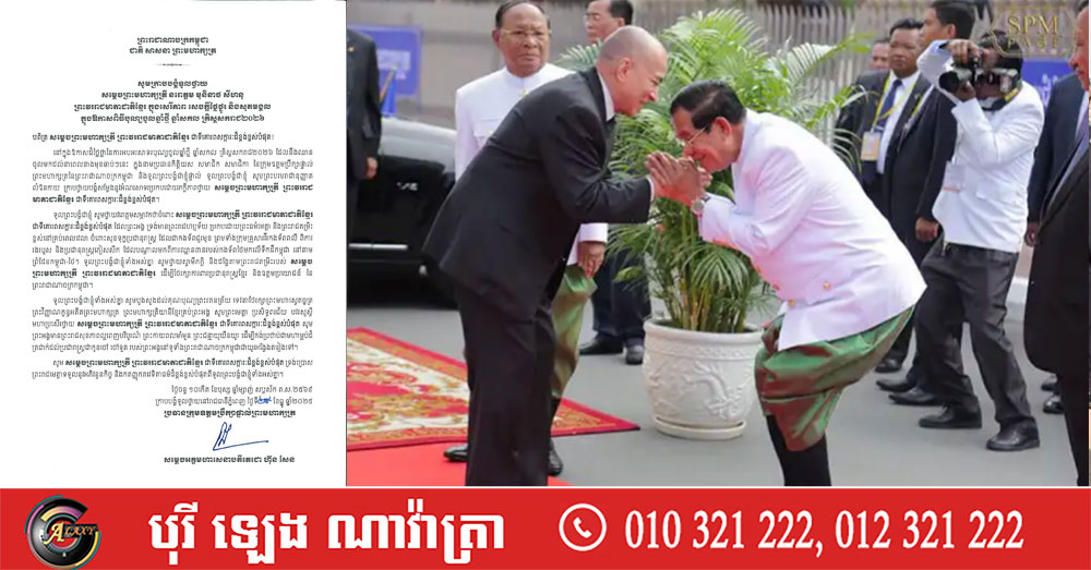 (ភ្នំពេញ)៖ សម្តេចតេជោ ហ៊ុន សែន ប្រធានក្រុមឧត្តមប្រឹក្សាផ្ទាល់ព្រះមហាក្សត្រ និងក្នុងនាមប្រធានកិត្តិយស សមាជិក សមាជិកា នៃក្រុមឧត្តមប្រឹក្សាផ្ទាល់ ព្រះមហាក្សត្រនៃព្រះរាជាណាចក្រកម្ពុជា បានថ្វាយសារលិខិត សូមក្រាបបង្គំទូលថ្វាយព្រះពរ ព្រះករុណាព្រះបាទសម្តេចព្រះបរមនាថ នរោត្តម សីហមុនី ព្រះមហាក្សត្រ នៃព្រះរាជាណាចក្រកម្ពុជា ក្នុងឱកាសដ៏មហានក្ខត្តឫក្សដ៏មហាប្រពៃថ្លៃថ្លា នៃពិធីបុណ្យចូលឆ្នាំថ្មី ឆ្នាំសកល គ្រិស្តសករាជ២០២៦។