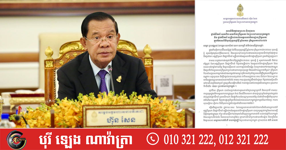 សម្តេចតេជោ ហ៊ុន សែន ចេញសារលិខិតថ្វាយព្រះពរ និងជូនពរ ថ្នាក់ដឹកនាំ សមាជិក សមាជិកាព្រឹទ្ធសភា និងថ្នាក់ដឹកនាំ មន្ដ្រីរាជការ នៃអគ្គលេខាធិការដ្ឋានព្រឹទ្ធសភា ក្នុងឱកាសពិធីបុណ្យចូលឆ្នាំថ្មី