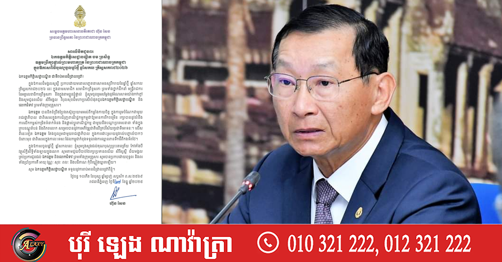 ក្នុងឱកាសដ៏មង្គលសួស្តី ប្រកបដោយមនោសញ្ចេតនាសោមនស្សរីករាយ នៃឆ្នាំថ្មី ឆ្នាំសកល គ្រិស្តសករាជ២០២៦នេះ ក្នុងនាមសមាជិក សមាជិកាព្រឹទ្ធសភា ព្រមទាំងថ្នាក់ដឹកនាំ មន្ត្រីរាជការនៃ អគ្គលេខាធិការព្រឹទ្ធសភា និងក្នុងនាមខ្លួនខ្ញុំផ្ទាល់ ខ្ញុំសូមចូលរួមសម្តែងនូវអំណរសាទរយ៉ាងកក់ក្តៅ និងសូមជូនពរជ័យ សិរីមង្គលវិបុលសុខដ៏មហាប្រសើរបំផុត។