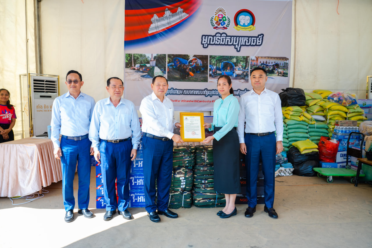 (ភ្នំពេញ)៖ លោក ឆាយ ឫទ្ធិសែន រដ្ឋមន្ដ្រីក្រសួងអភិវឌ្ឍន៍ជនបទ សមាជិកគណៈអចិន្ដ្រៃយ៍គណៈកម្មាធិការកណ្ដាលសហភាពសហព័ន្ធយុវជនកម្ពុជា និងជាប្រធានកិត្តិយសក្រុមការងារសហភាពសហព័ន្ធយុវជនកម្ពុជា ក្នុងវិស័យអភិវឌ្ឍន៍ជនបទ នាថ្ងៃទី៣១ ខែធ្នូ ឆ្នាំ២០២៥នេះ បានអញ្ជើញទទួលអំណោយរបស់ លោកស្រី នុច ចន្ថា ភរិយារបស់លោក ជួប រតនា រដ្ឋលេខាធិការក្រសួងអភិវឌ្ឍន៍ជនបទ ម្រាប់យកទៅឧបត្ថម្ភគាំទ្រដល់គ្រួសារវីរកងទ័ព និងប្រជាជនភៀសសឹកកម្ពុជា នៅតាមទីតាំងសុវត្ថិភាពនានា ក្នុងអំឡុងពេលនៃការប៉ះទង្គិចដោយប្រដាប់អាវុធ រវាងយោធាកម្ពុជា និងថៃនាពេលកន្លងមកនេះ។ ដោយមានការចូលរួមពី រដ្ឋលេខាធិការប្រចាំការ ថ្នាក់ដឹកនាំក្រសួង រួមជាមួយលោកស្រីប្រធាន និងសមាជិក សមាគមនារីកម្ពុជាដើម្បីសន្តិភាព និងអភិវឌ្ឍន៍នៃក្រសួងអភិវឌ្ឍន៍ជនបទផងដែរ។