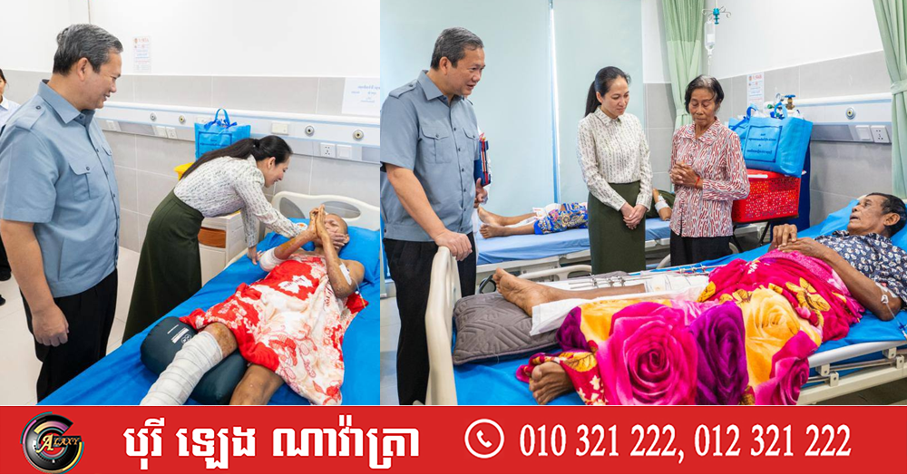 សម្តេចបវរធិបតី ហ៊ុន ម៉ាណែត និងលោកជំទាវបណ្ឌិត បន្តចុះជួបសួរសុខទុក្ខវីរកងទ័ព និងវីរនគរបាល ដែលរងរបួសក្នុងសមរភូមិ កំពុងសម្រាកព្យាបាលនៅតាមមន្ទីរពេទ្យ ក្នុងរាជធានីភ្នំពេញ (Video inside)